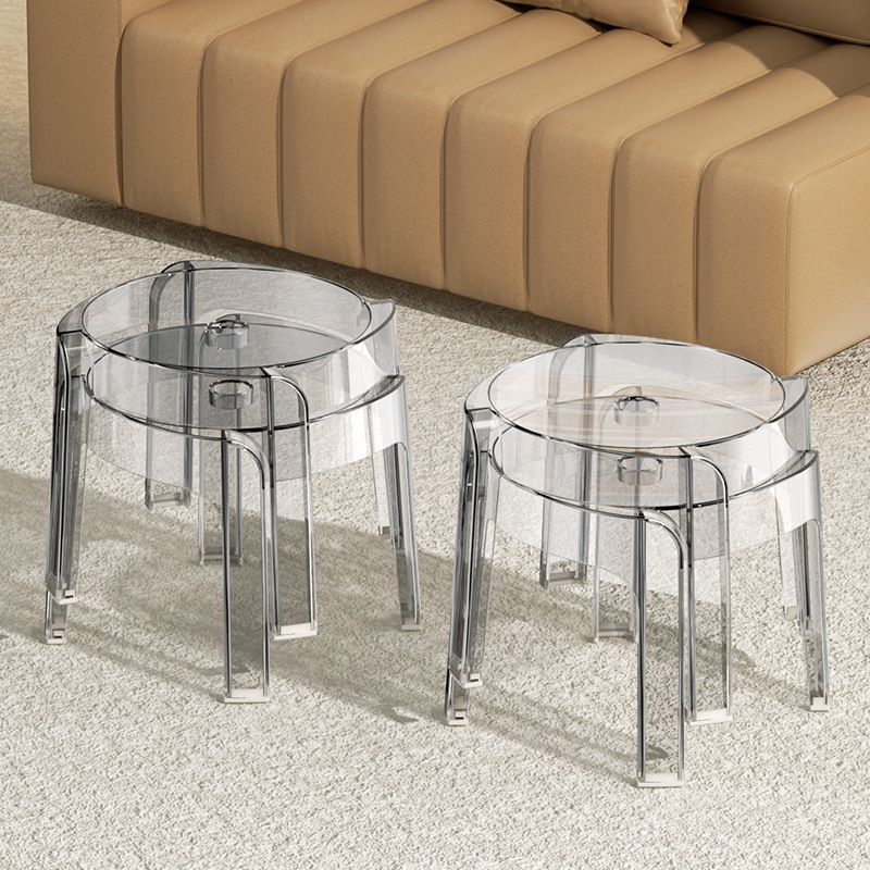 旋风凳子高凳矮凳可叠放家用加厚备用椅子圆凳轻奢透明家用风车凳