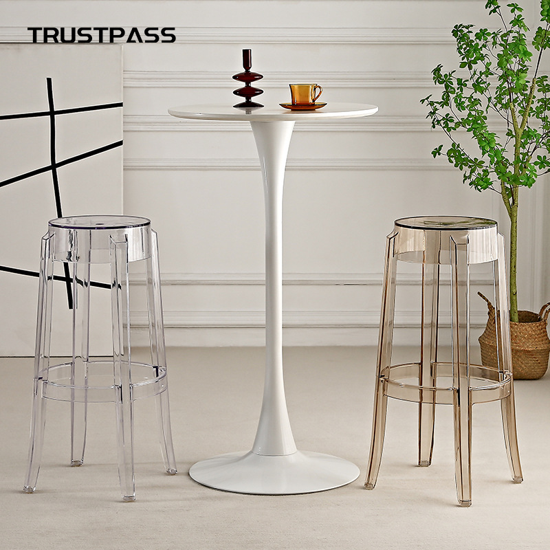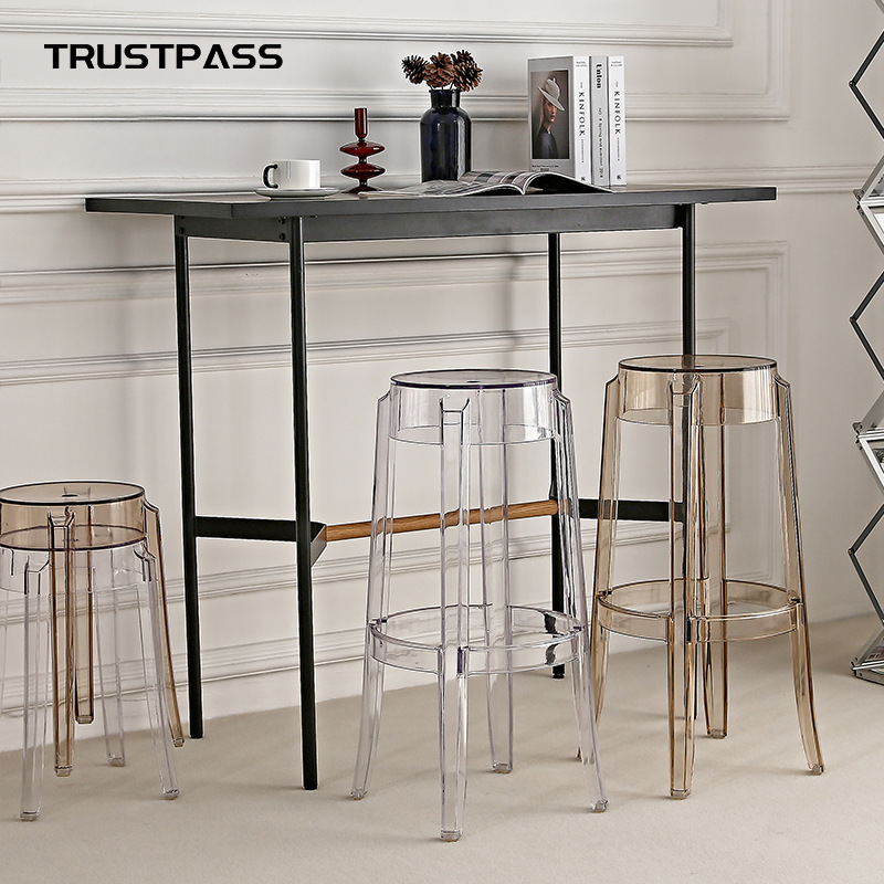 ins吧台凳PC接待酒吧椅子 实验室圆高脚北欧透明亚克力设计师凳子
