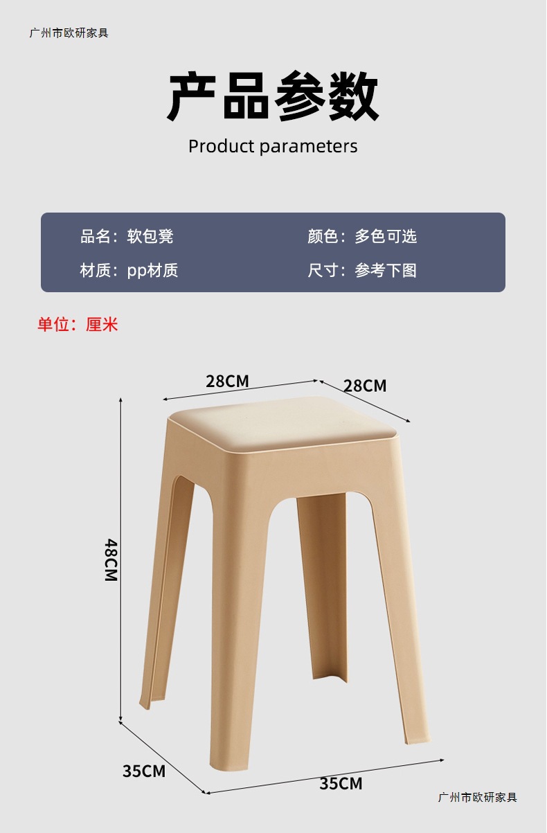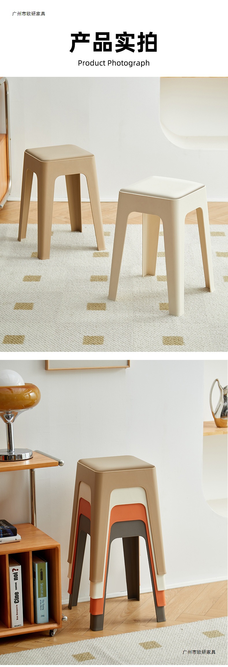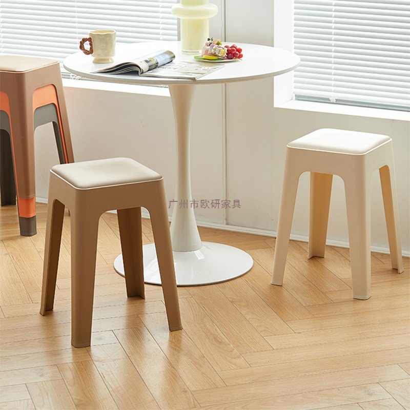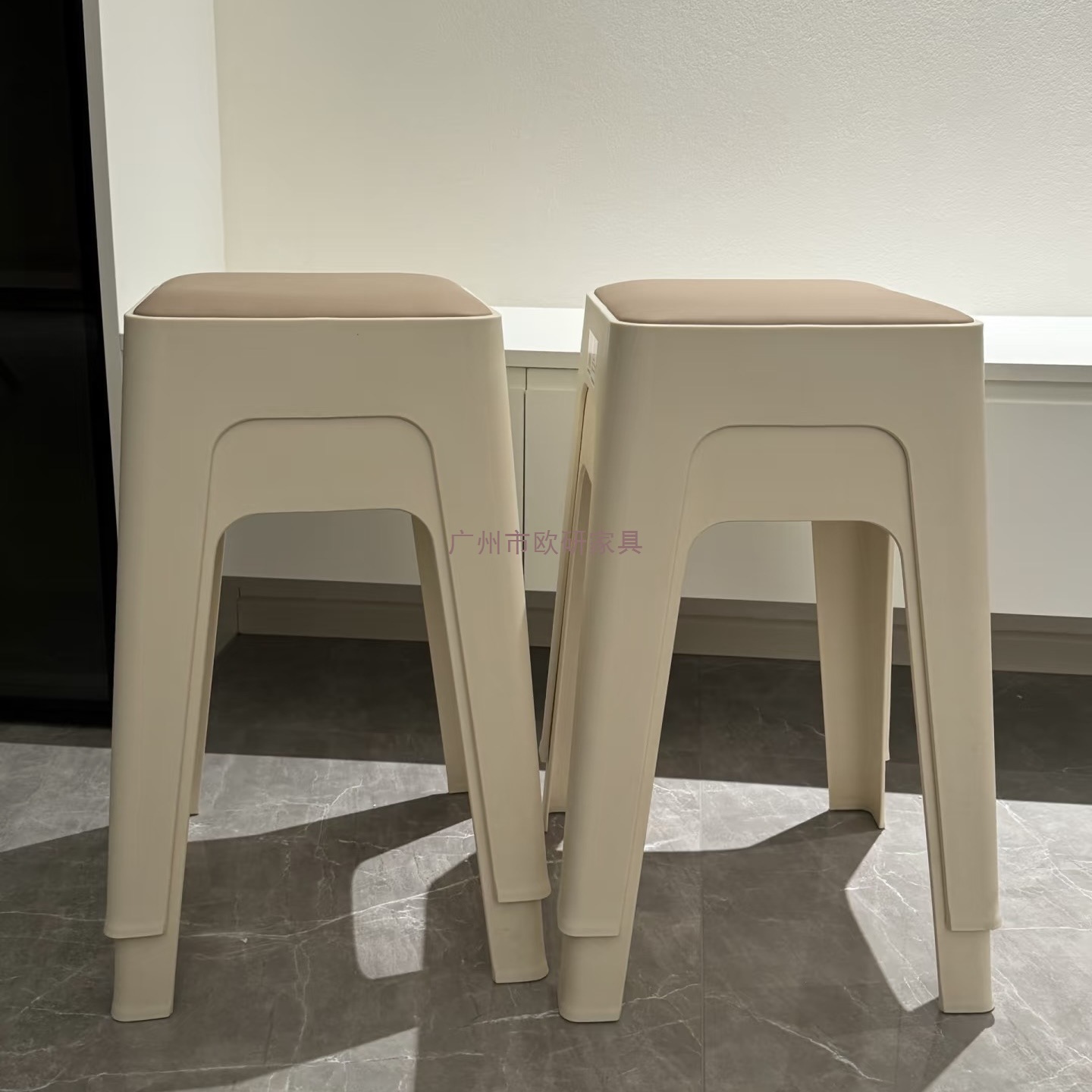 新款家用塑料凳子简约可叠放餐凳轻奢加厚软包高凳餐椅客厅板凳