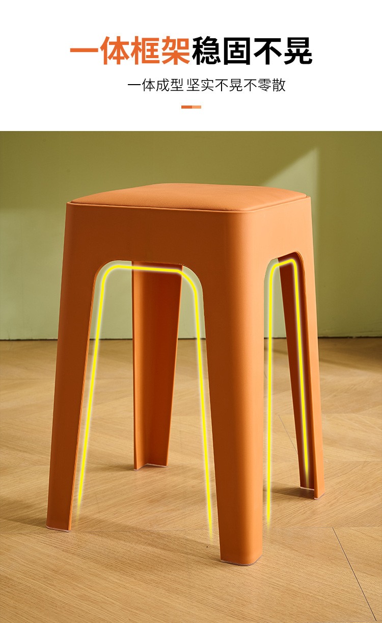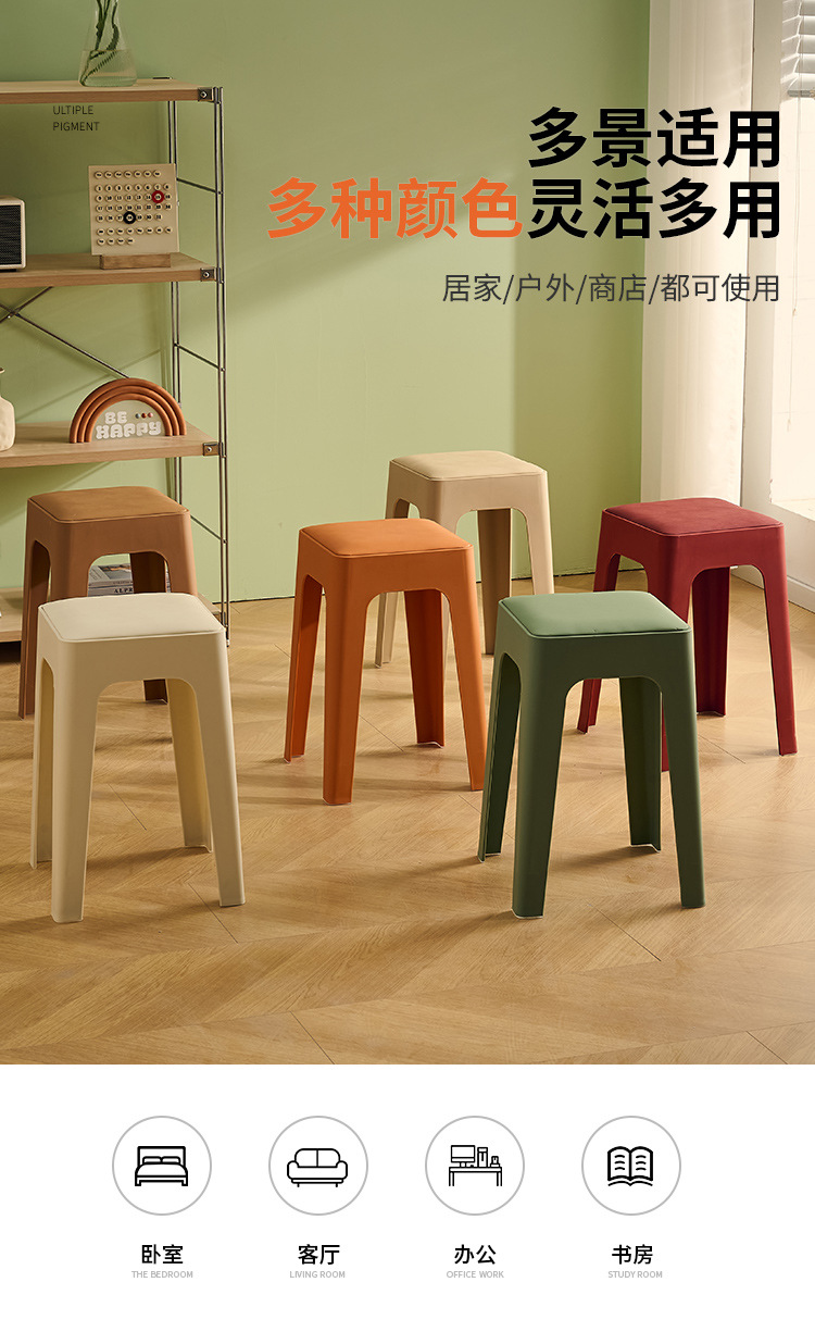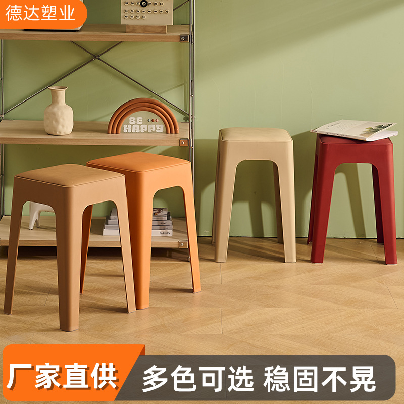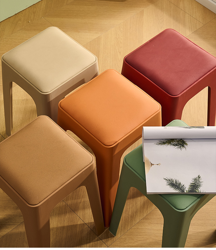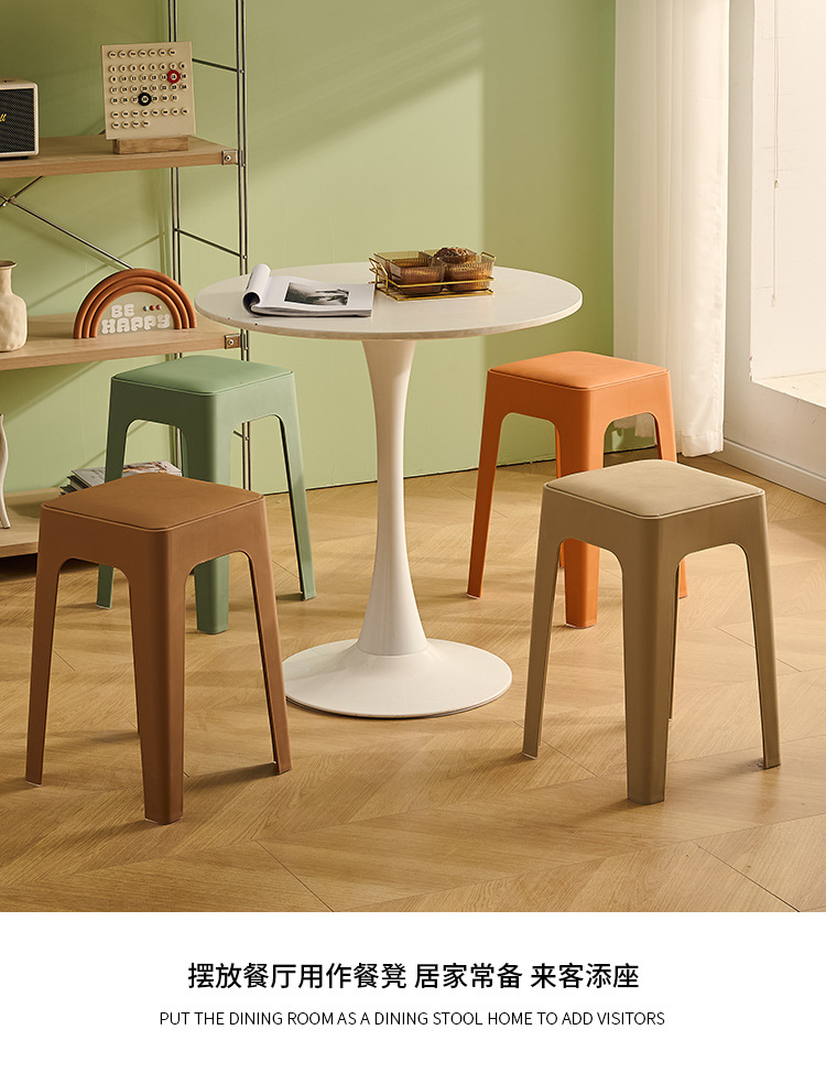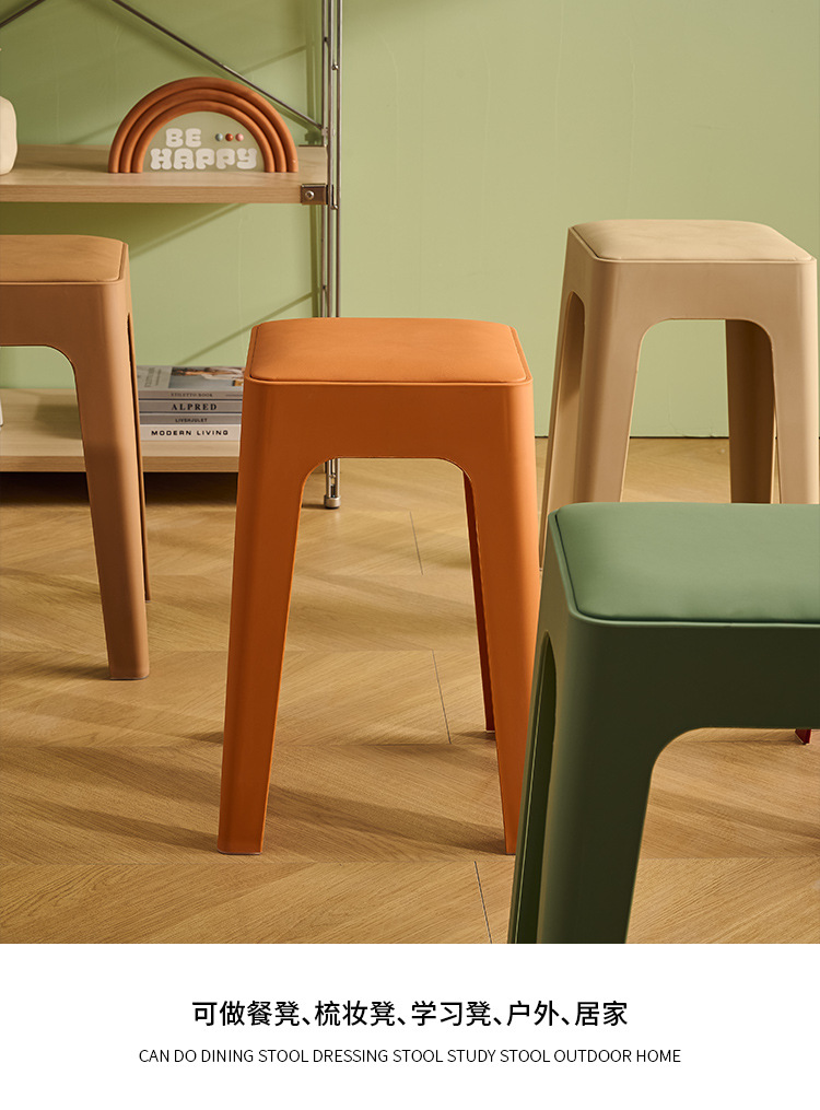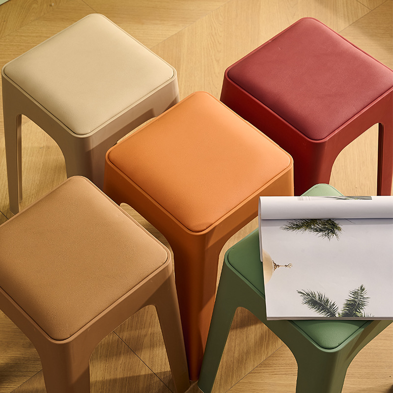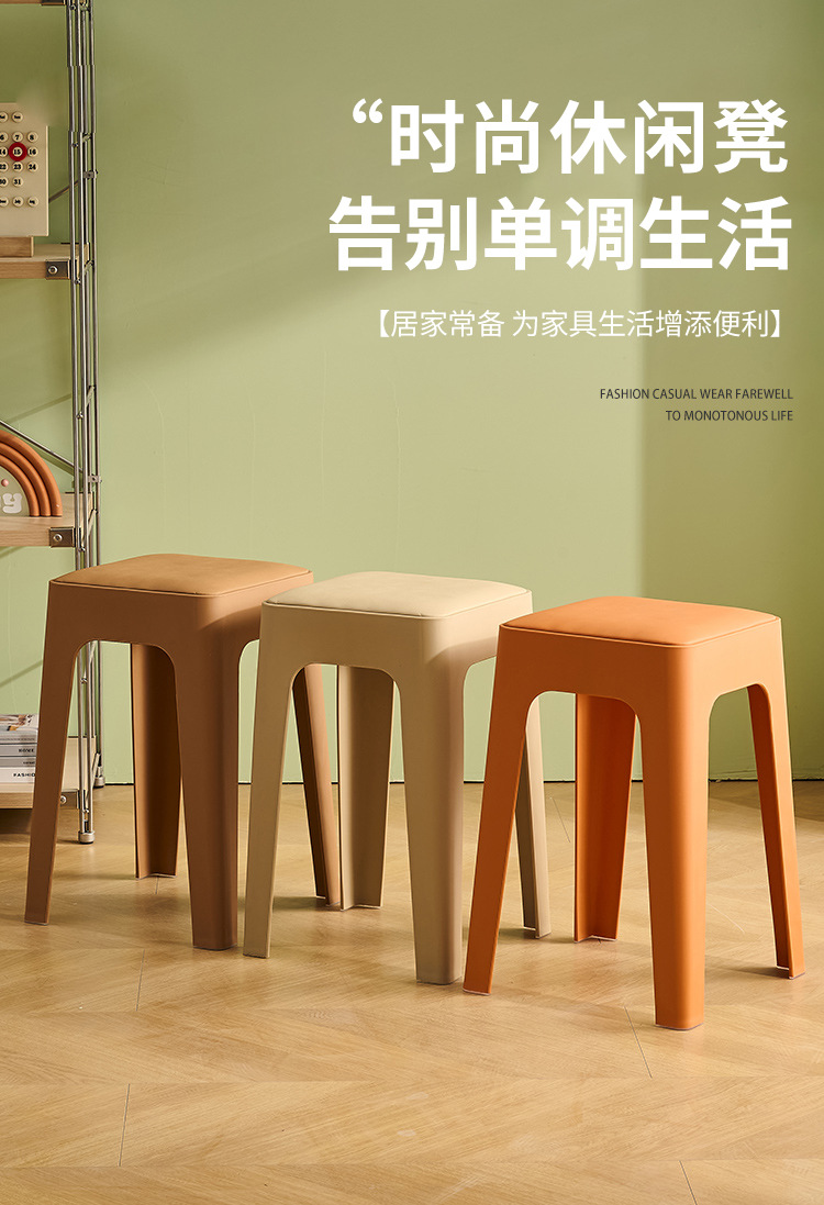 成人塑料方凳家用软包休闲板凳可叠放客厅餐桌凳批发餐厅吃饭凳子
