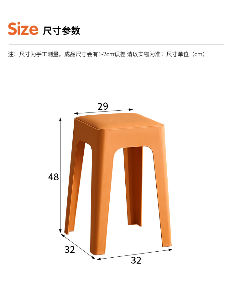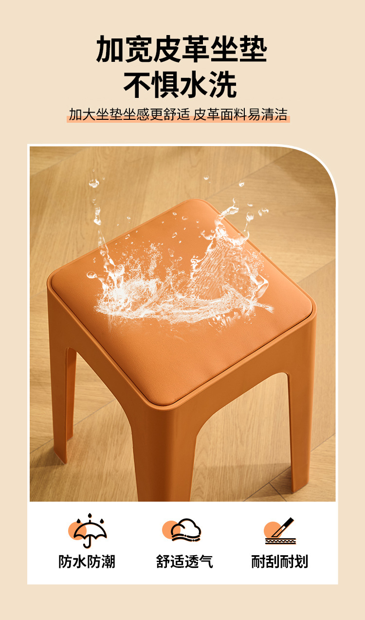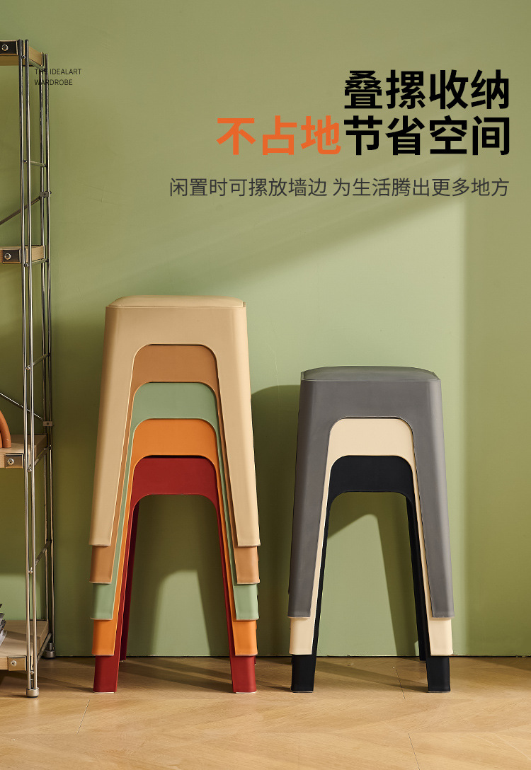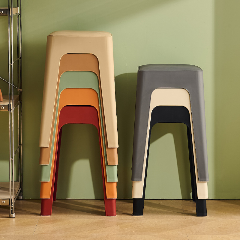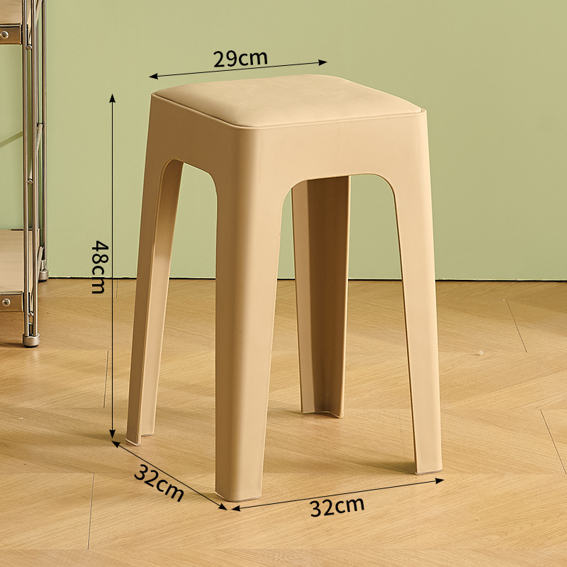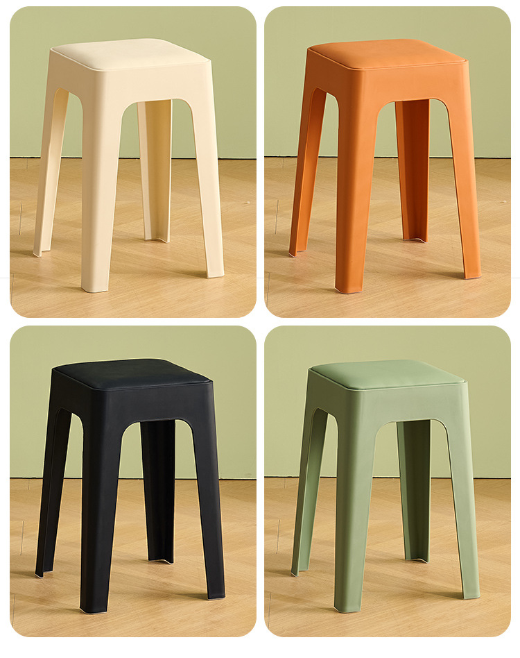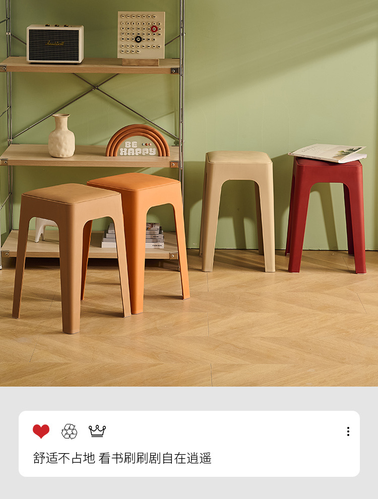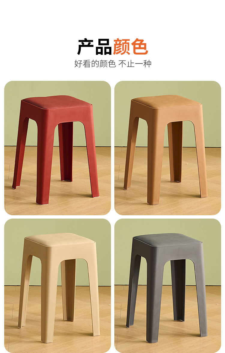 成人塑料方凳家用软包休闲板凳可叠放客厅餐桌凳批发餐厅吃饭凳子