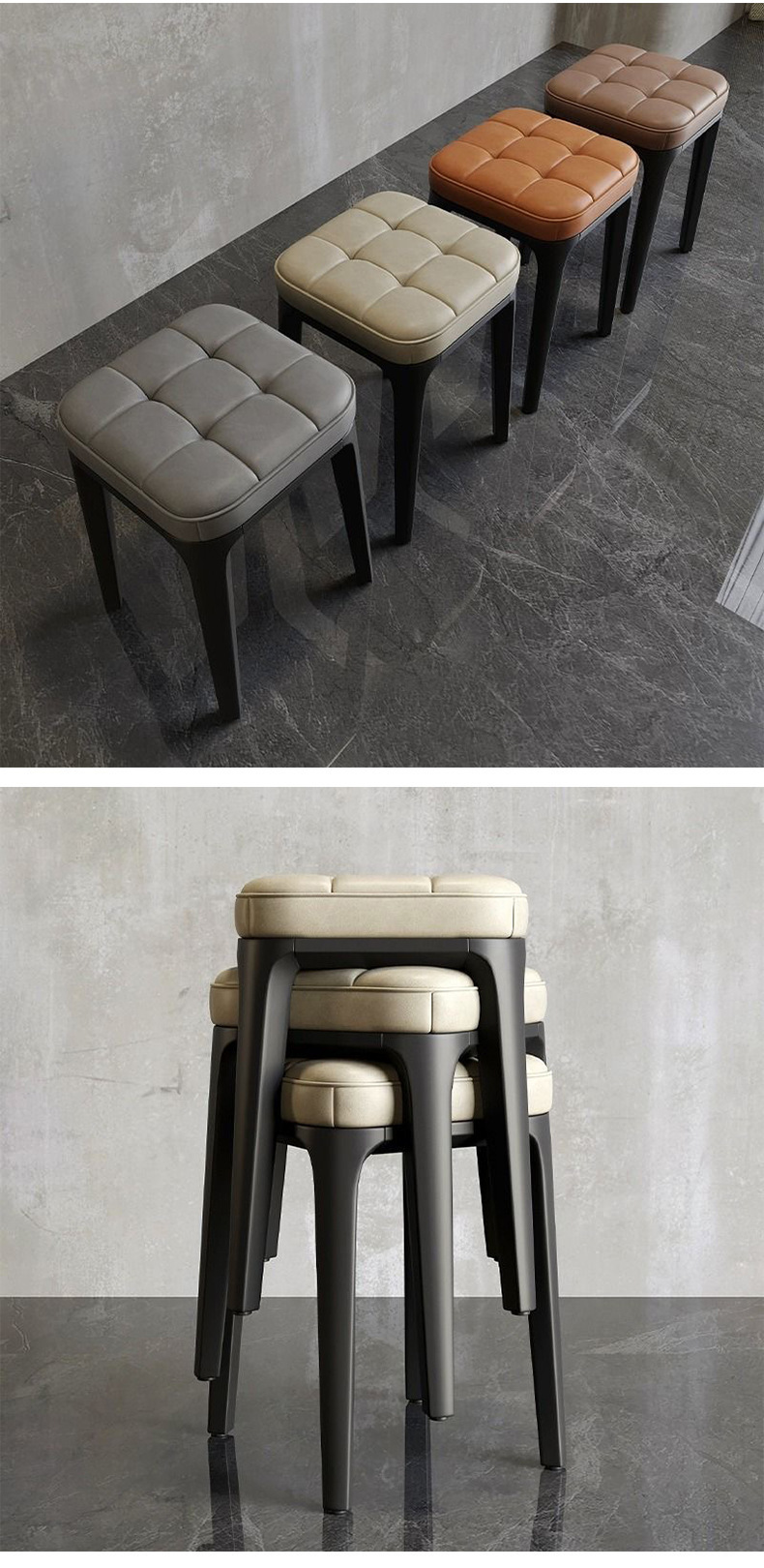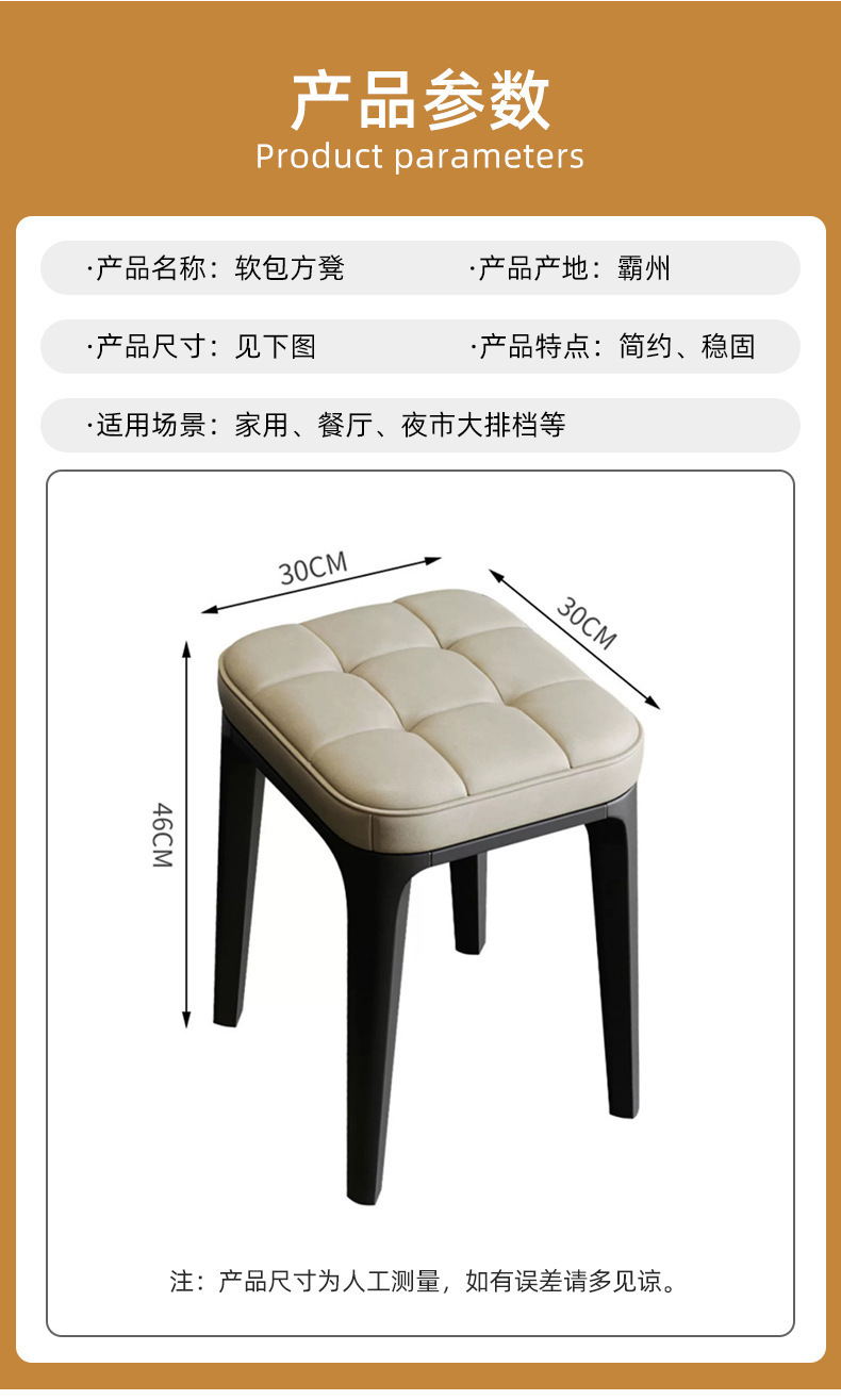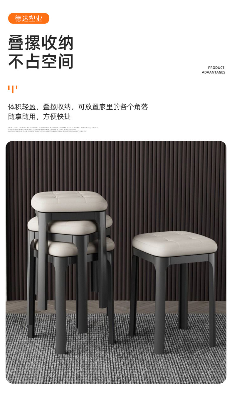 家用软包方凳客厅可叠放凳子简约时尚餐桌凳卧室化妆凳休闲板凳