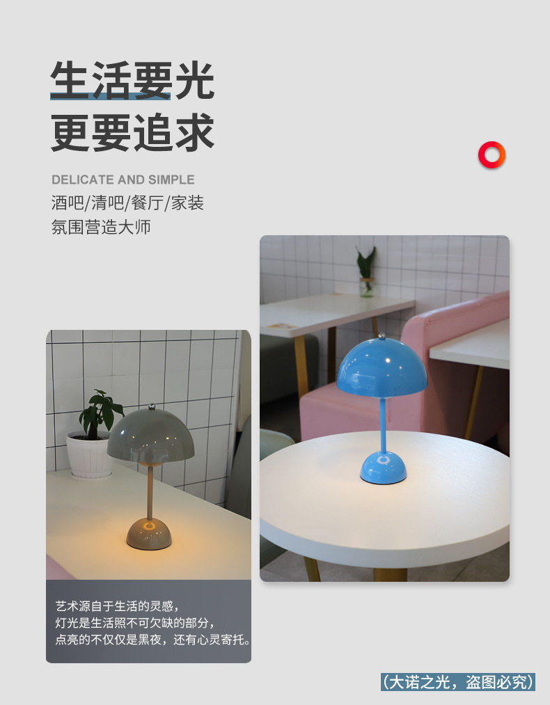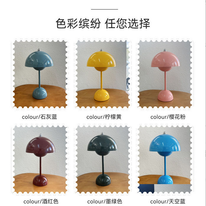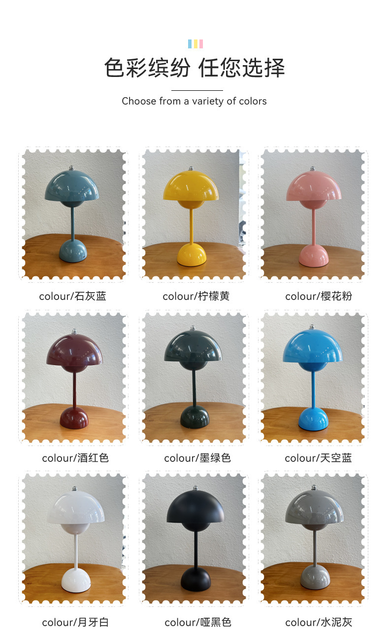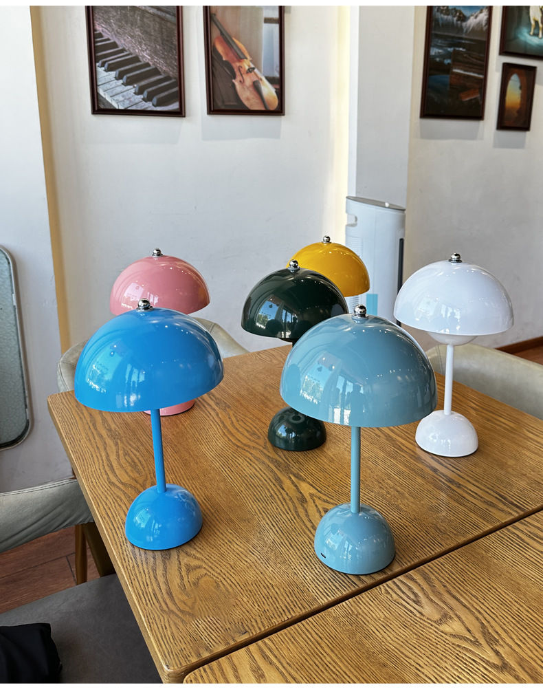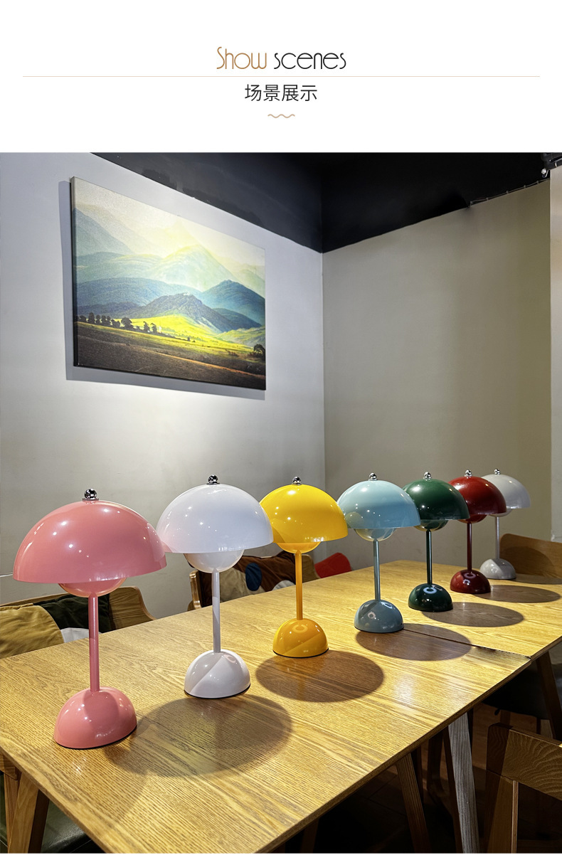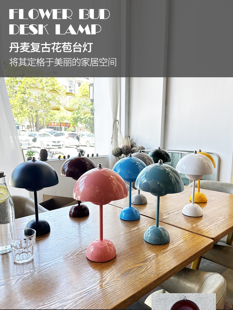 跨境热销丹麦花苞台灯USB卧室充电金属铁艺蘑菇装饰氛围感小夜灯
