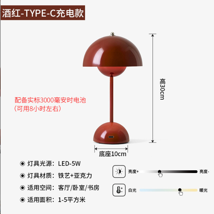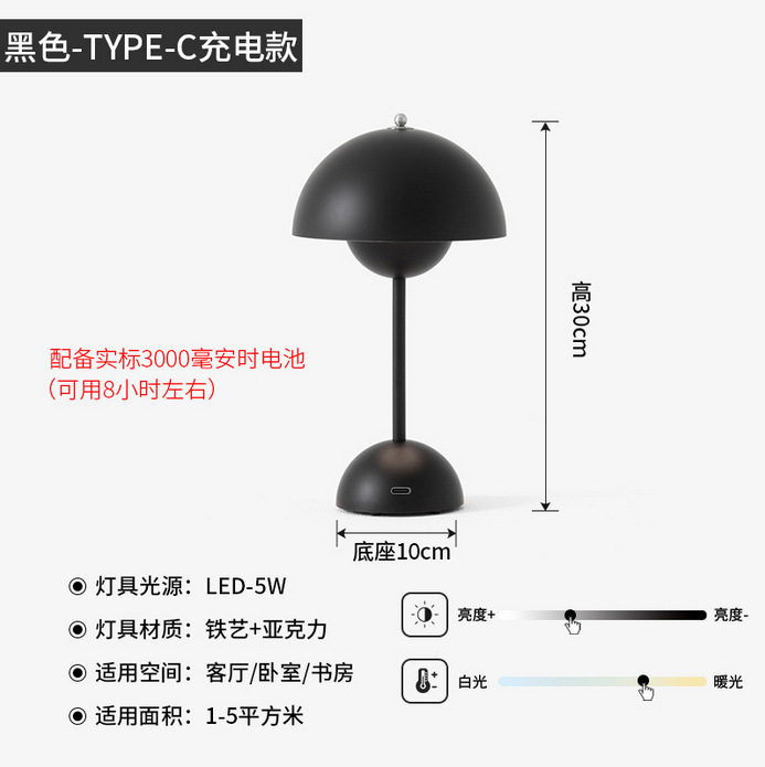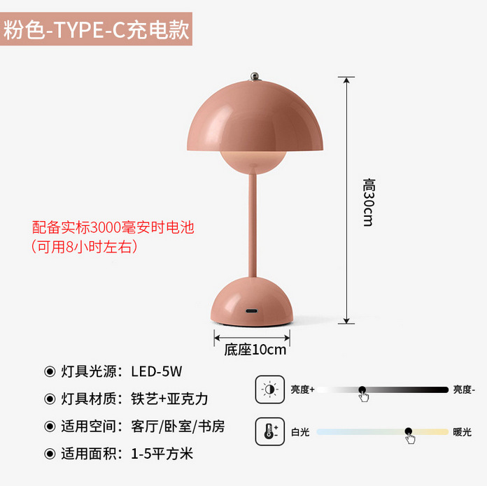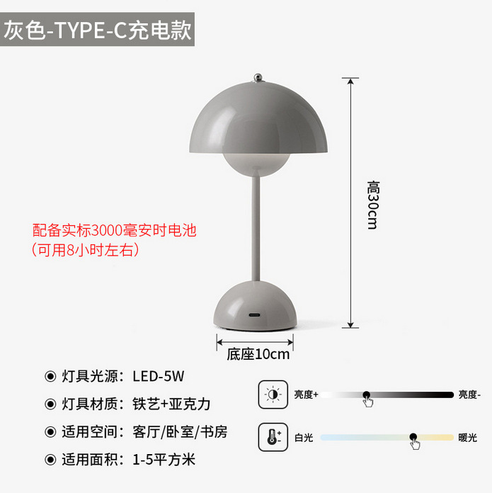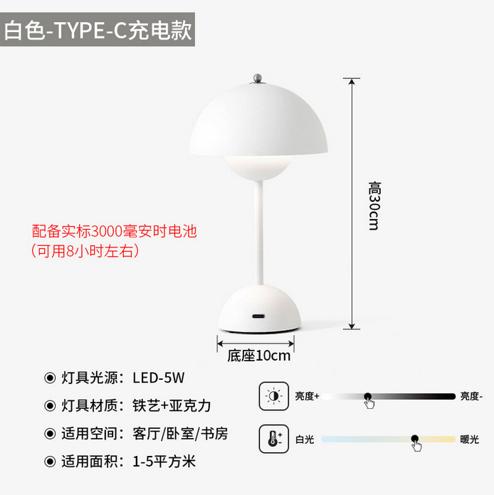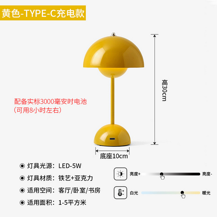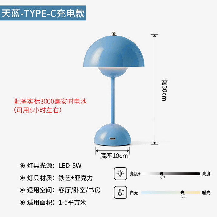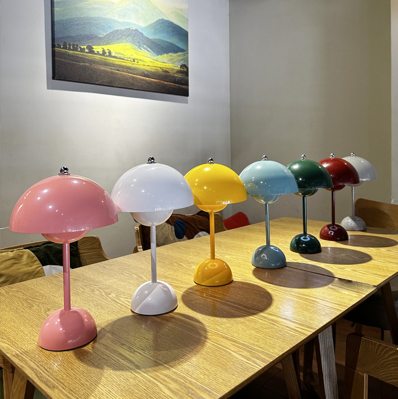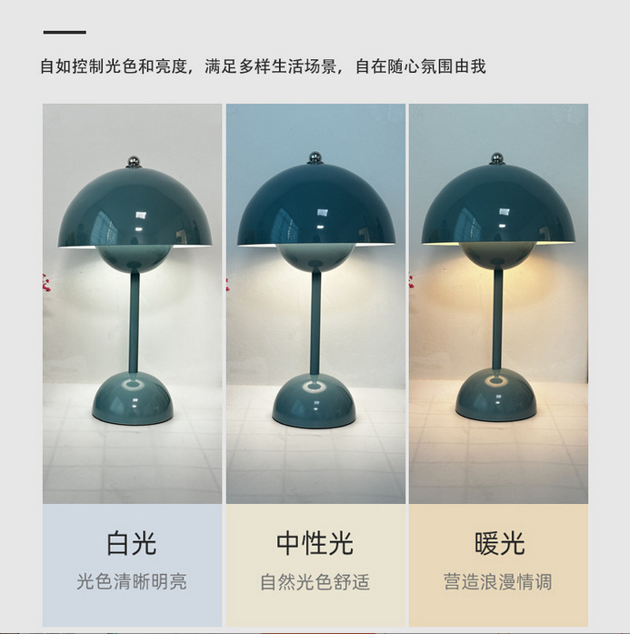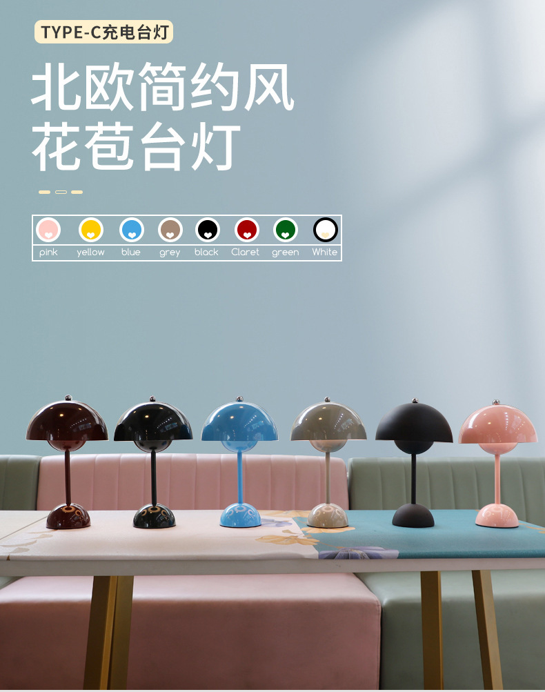跨境热销丹麦花苞台灯USB卧室充电金属铁艺蘑菇装饰氛围感小夜灯