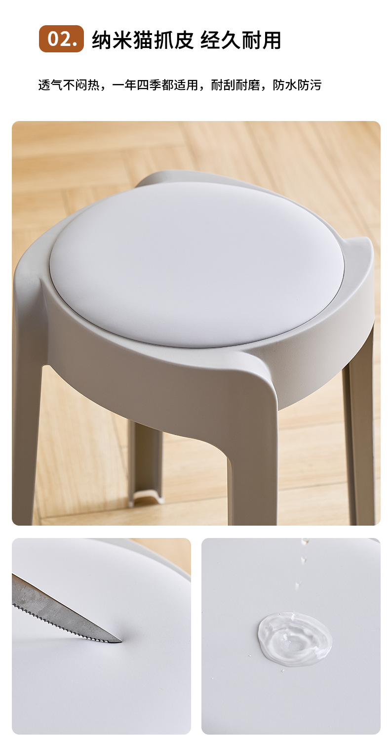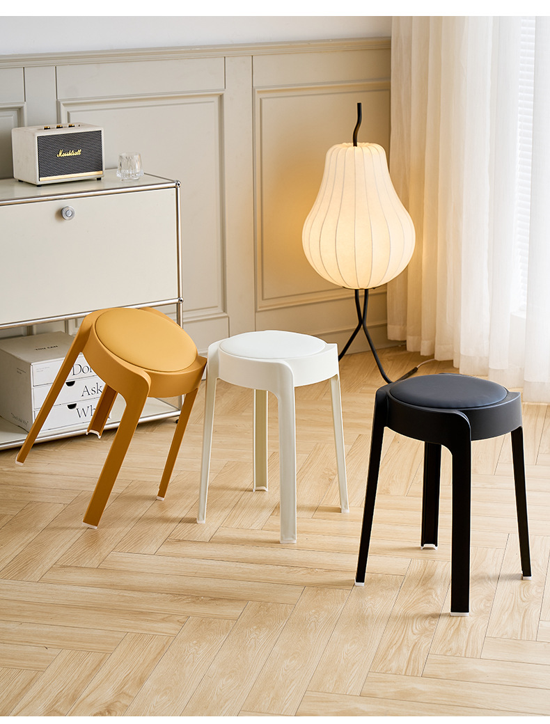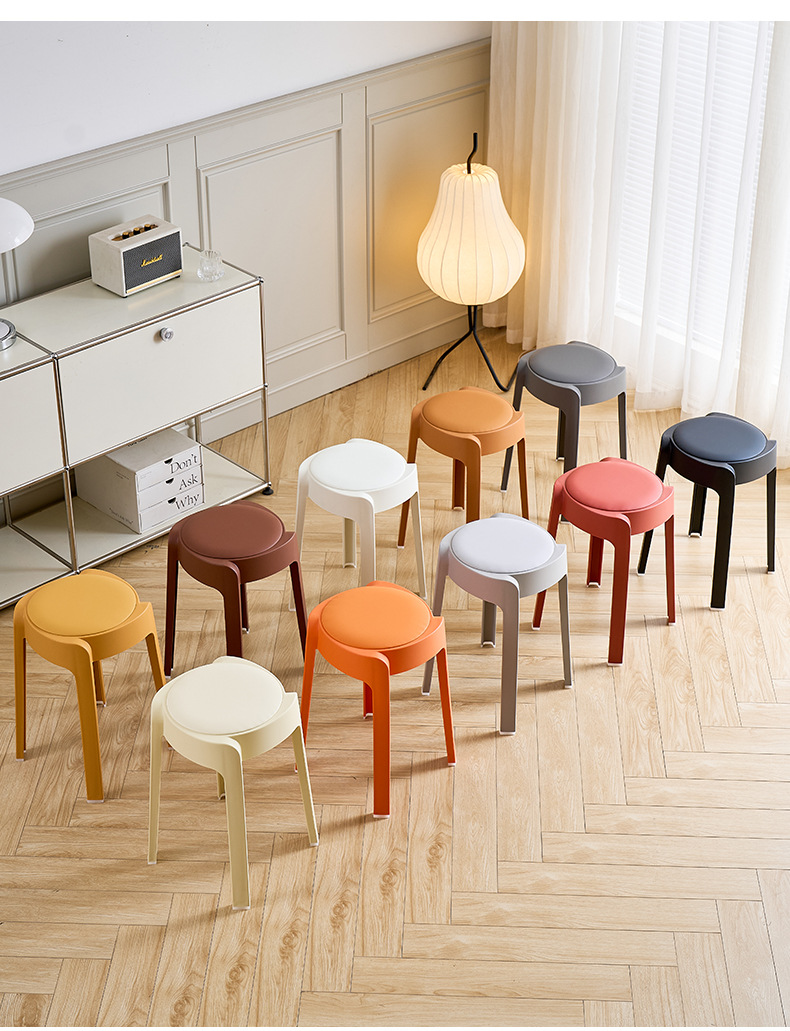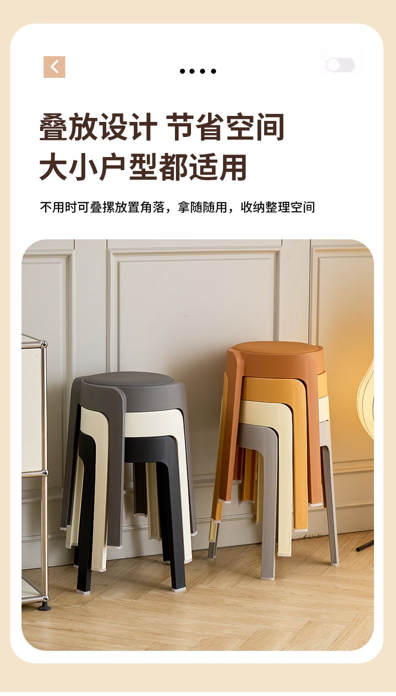 塑料凳子加厚可叠放圆凳家用客厅出租房北欧轻奢旋风凳软包风车凳