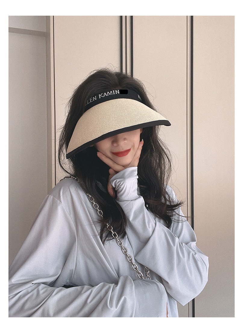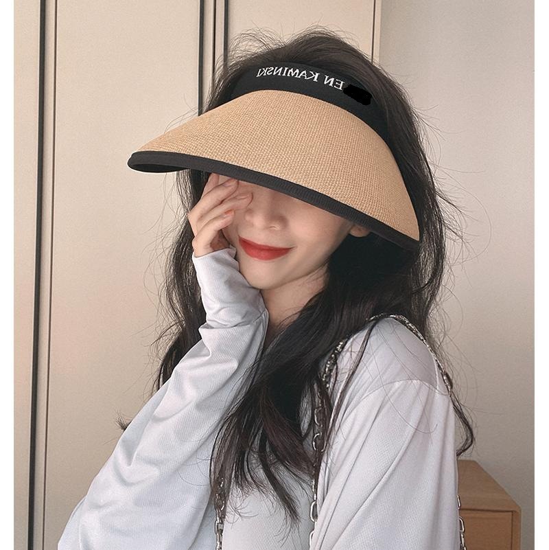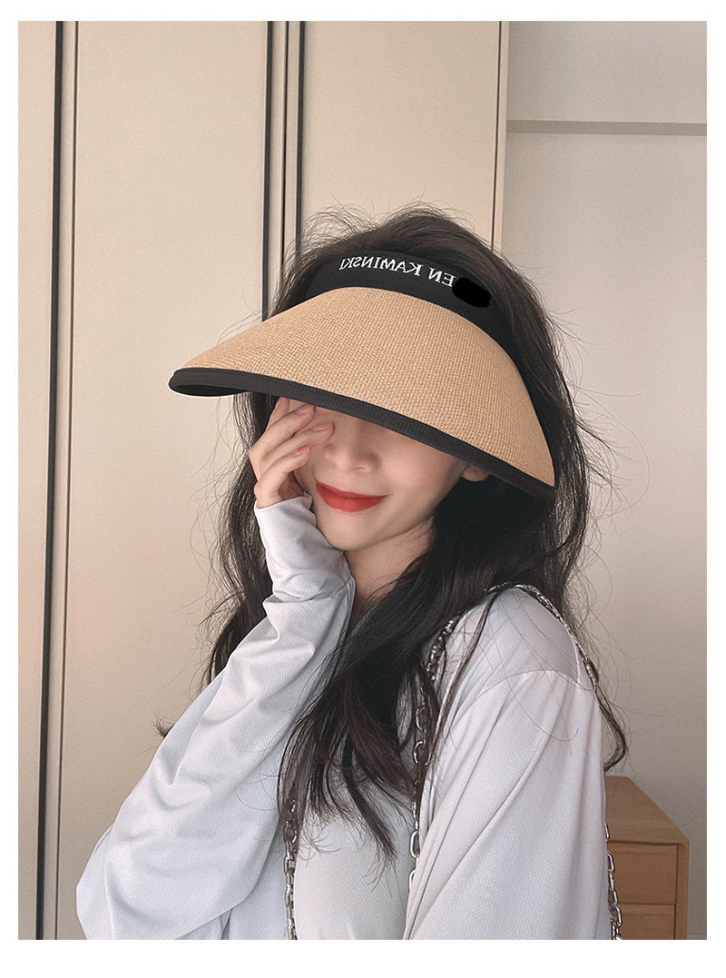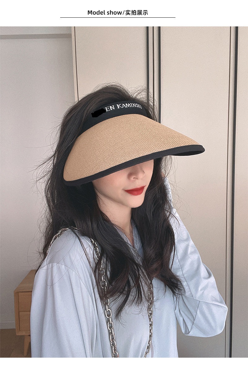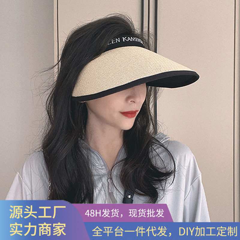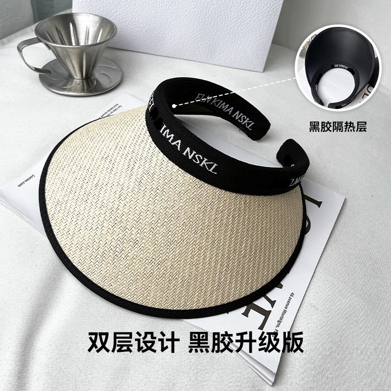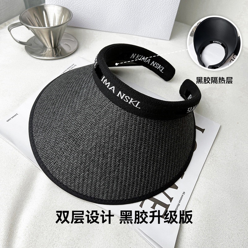 夏季防晒太阳帽空顶网红同款防紫外线遮阳黑胶加大檐双层编织草帽