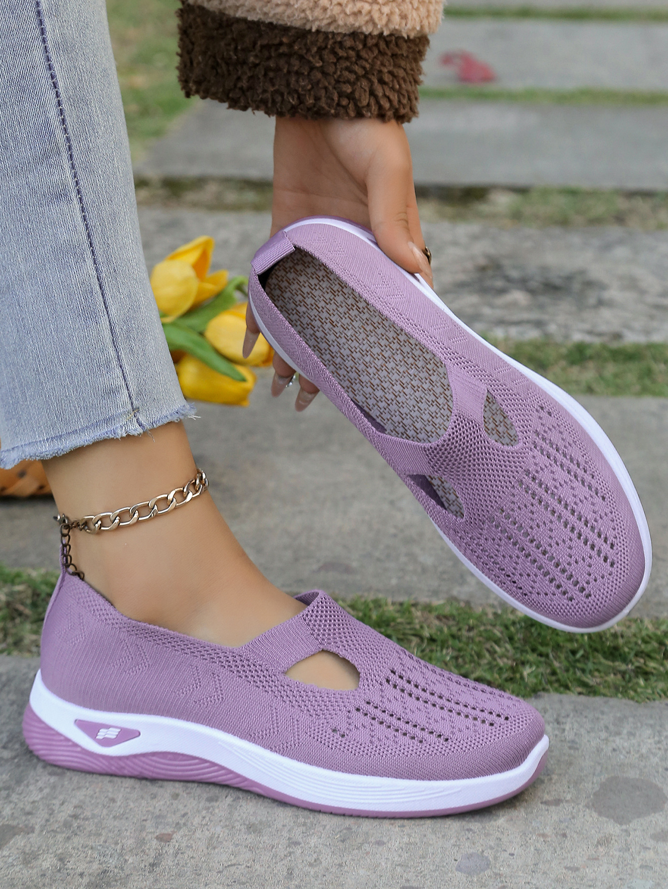 2025时尚一脚蹬软底舒适防滑镂空鞋夏季防滑透气休闲网布鞋网面鞋