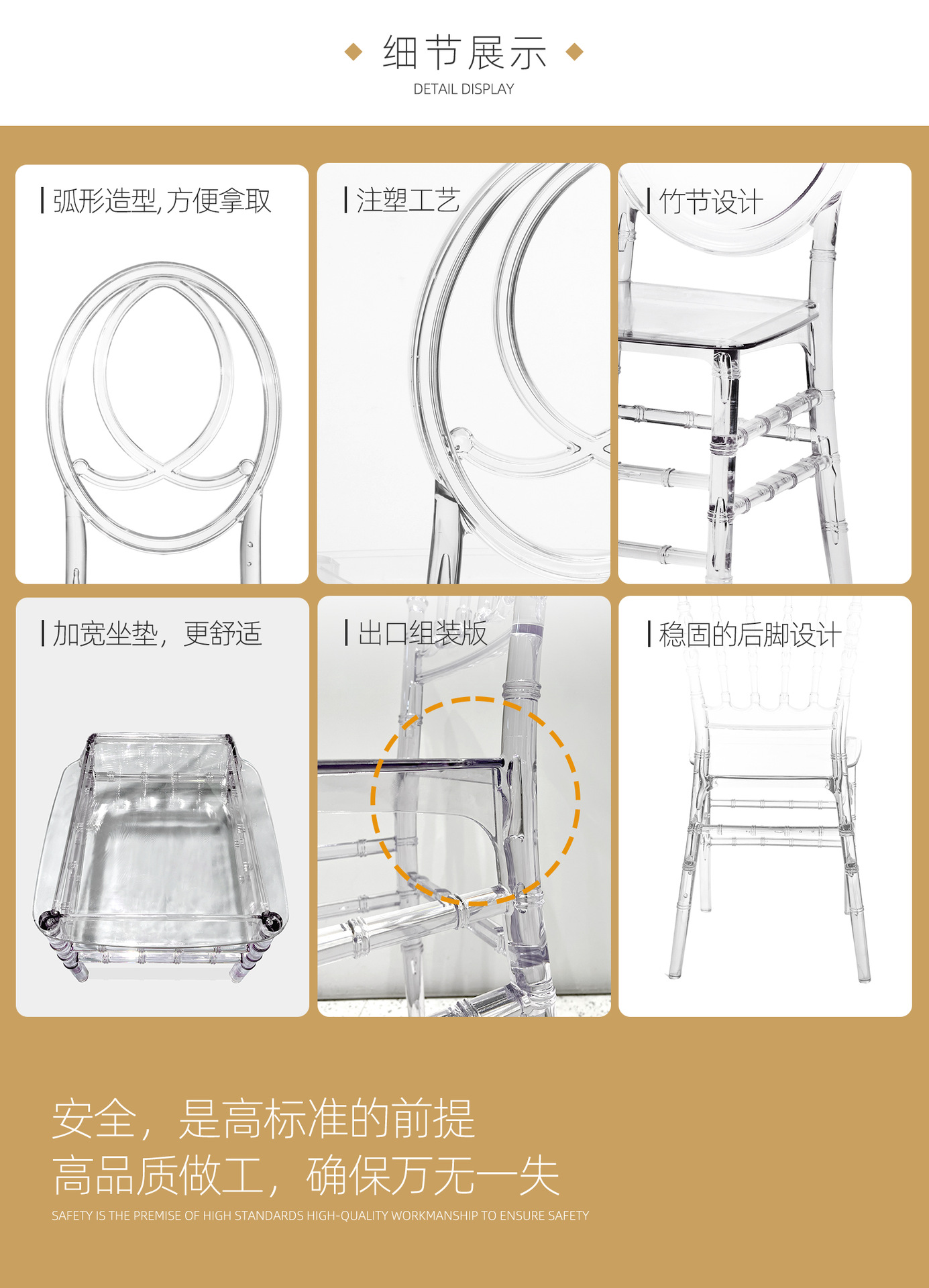 透明亚克力凳子竹节椅 户外婚庆椅餐椅 酒店宴会椅 凤凰水晶椅
