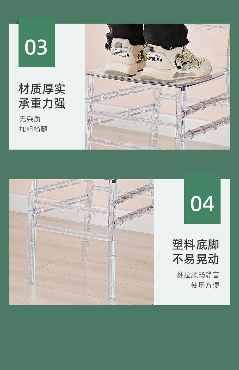 中古风竹节酒店宴会透明亚克力水晶椅婚礼家用商用餐椅中古餐椅