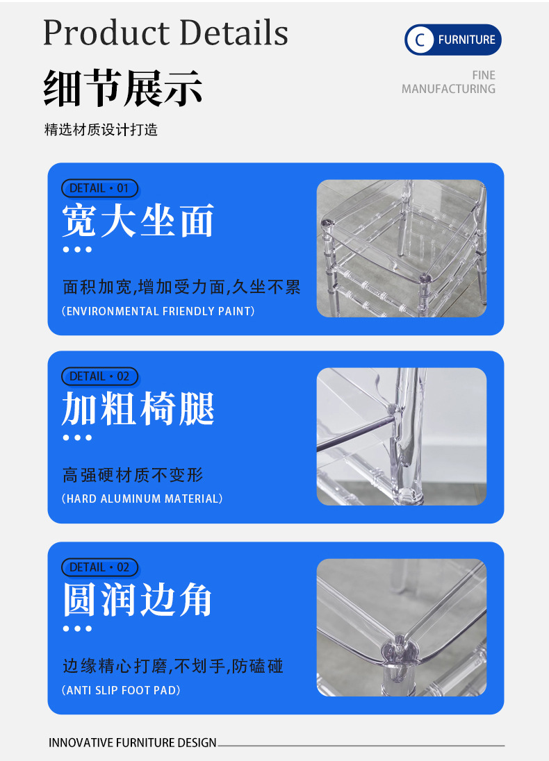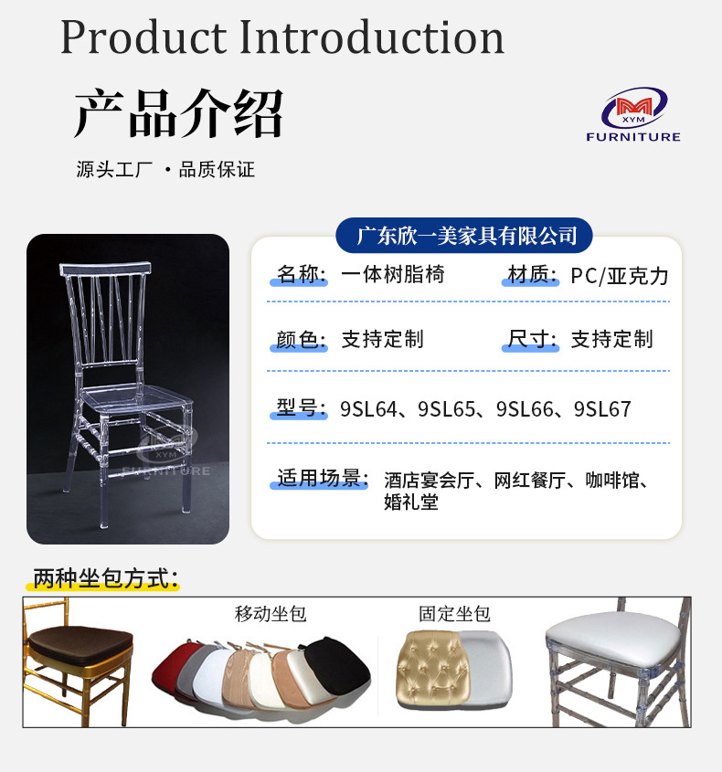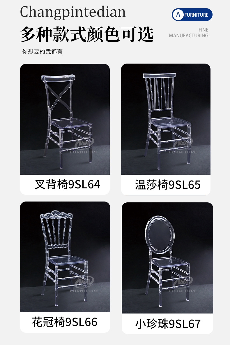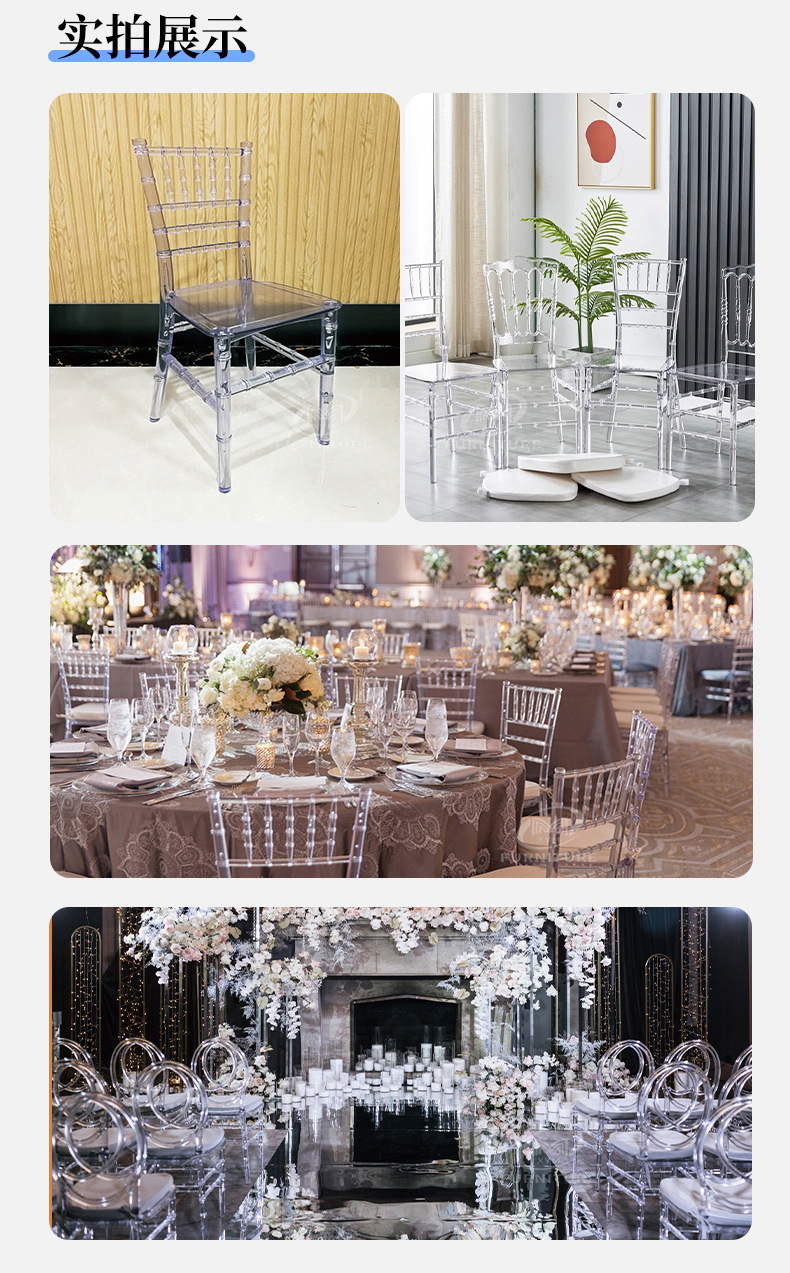 畅销款婚礼宴会厅餐椅透明水晶椅 酒店户外活动亚克力一体水晶椅