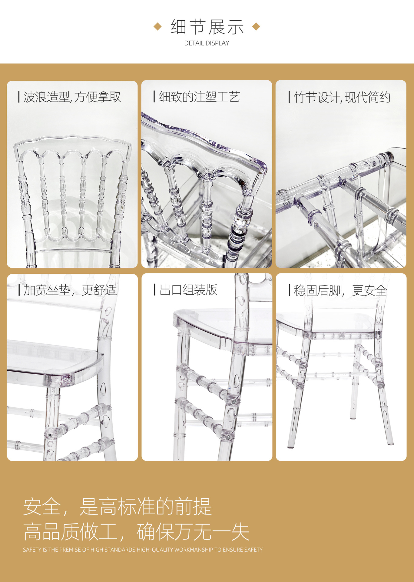 创意ins风透明水晶椅咖啡厅洽谈椅酒店户外婚礼椅子亚克力竹节椅
