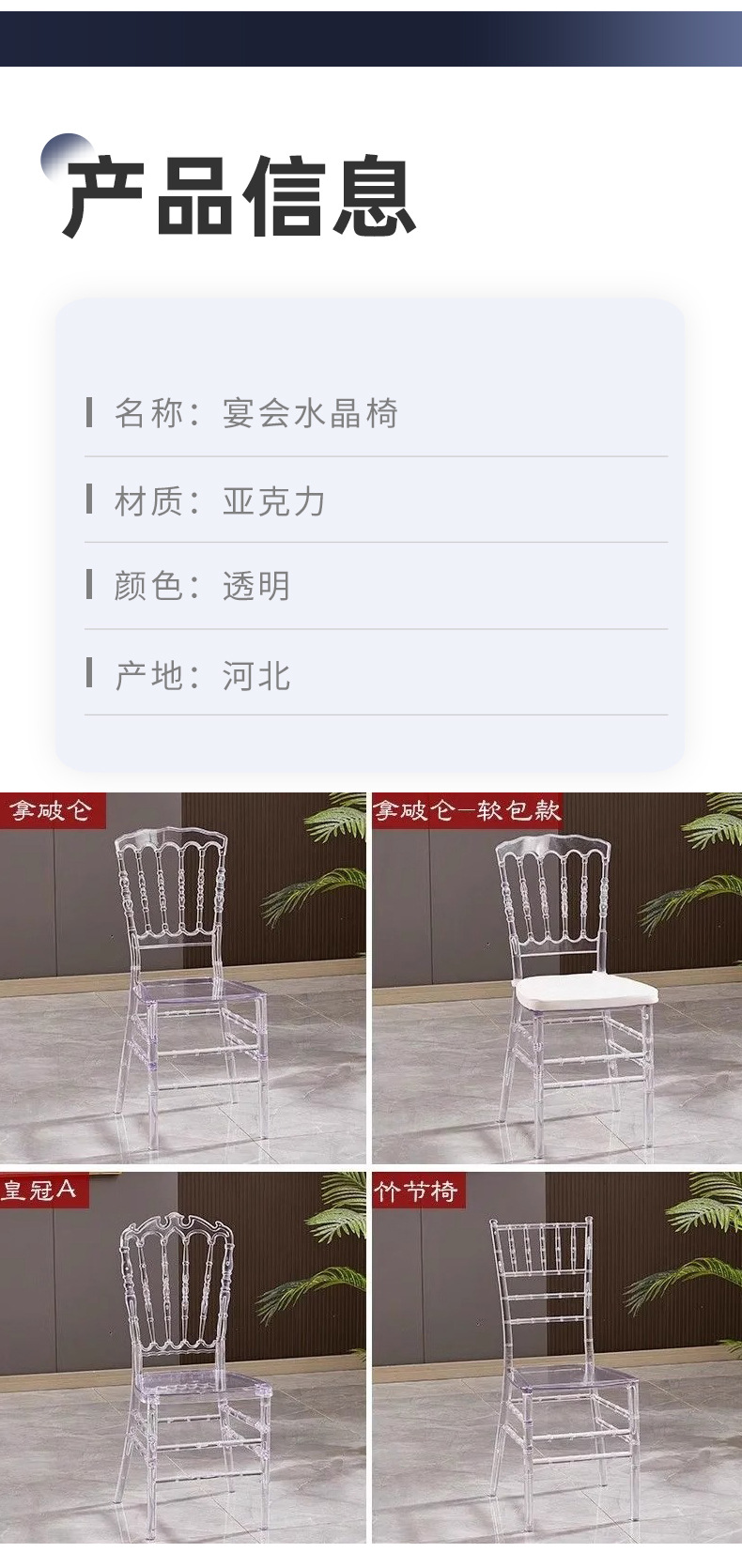 crystal acrylic transparent banquet hall chair hotel wedding simple napoleon outdoor bamboo plastic banquet chair