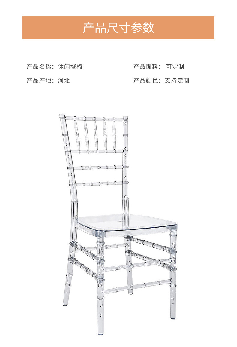 亚克力透明水晶椅酒店宴会厅婚庆礼堂户外活动塑料拿破仑竹节椅子
