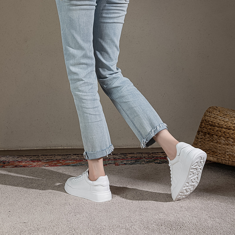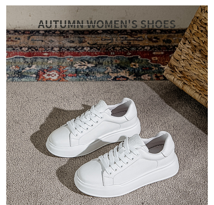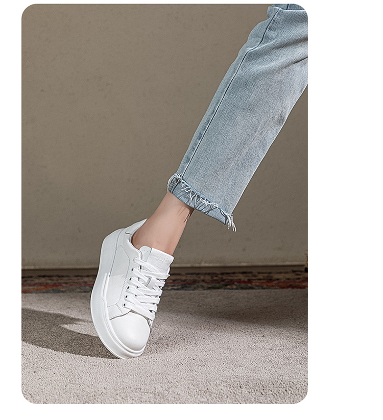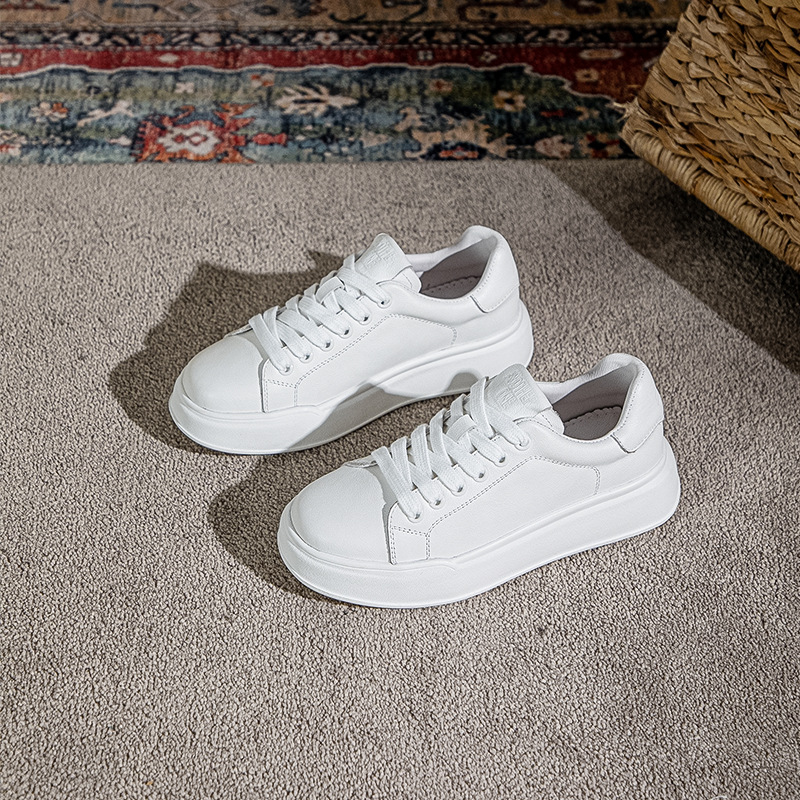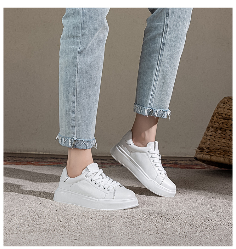 2024新款秋季真皮小白鞋女百搭配裙子轻便休闲鞋秀气显瘦厚底板鞋