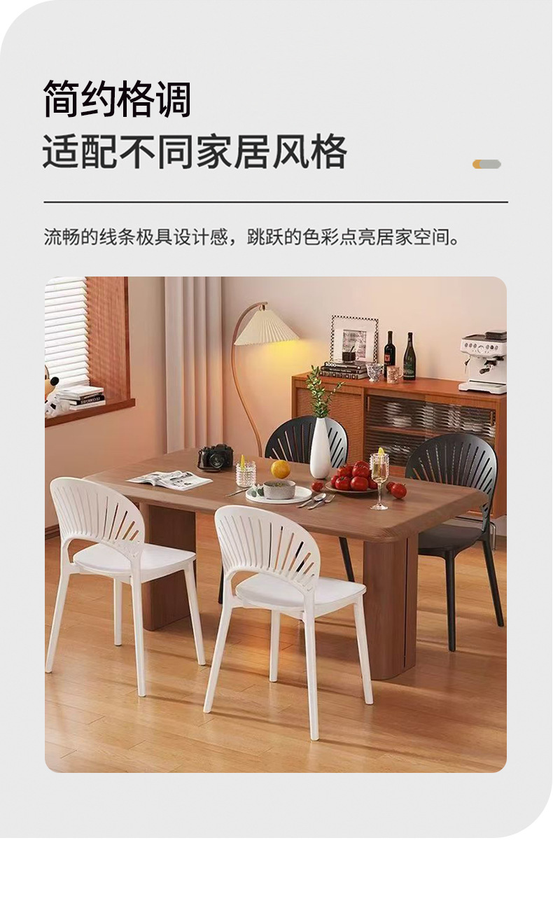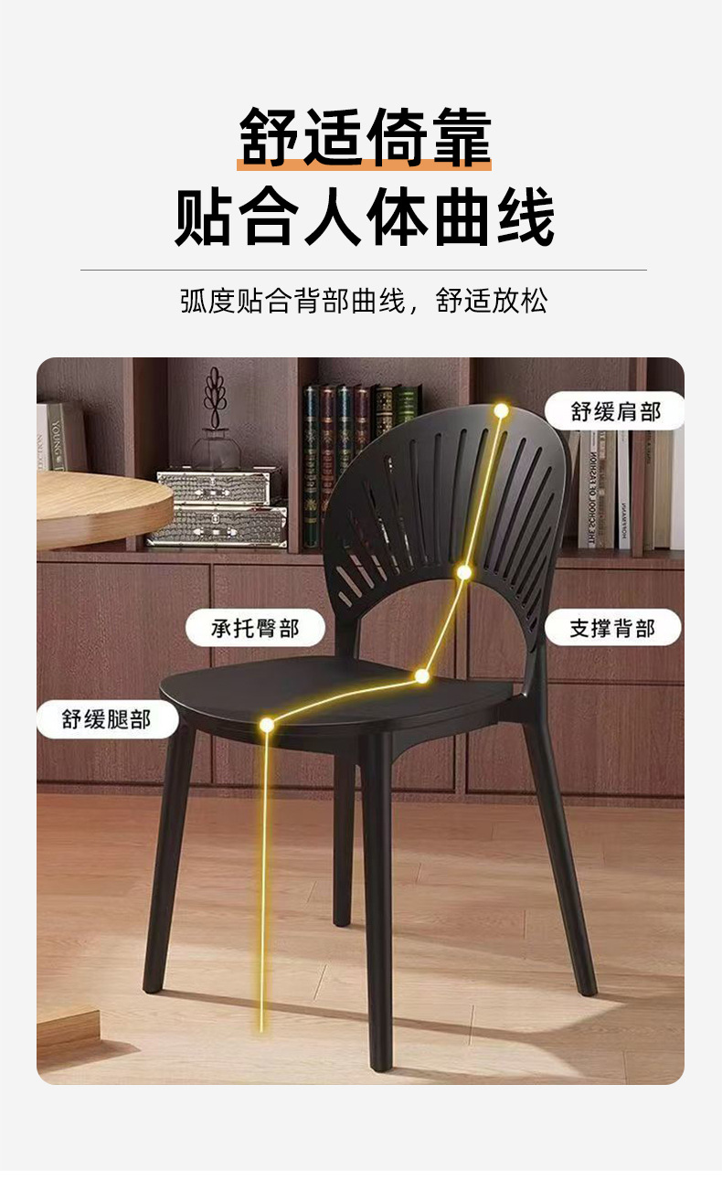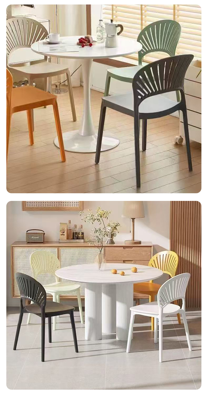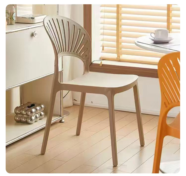 外贸塑料椅子现代简约家用扇形靠背餐椅餐厅镂空网红休闲贝壳椅子