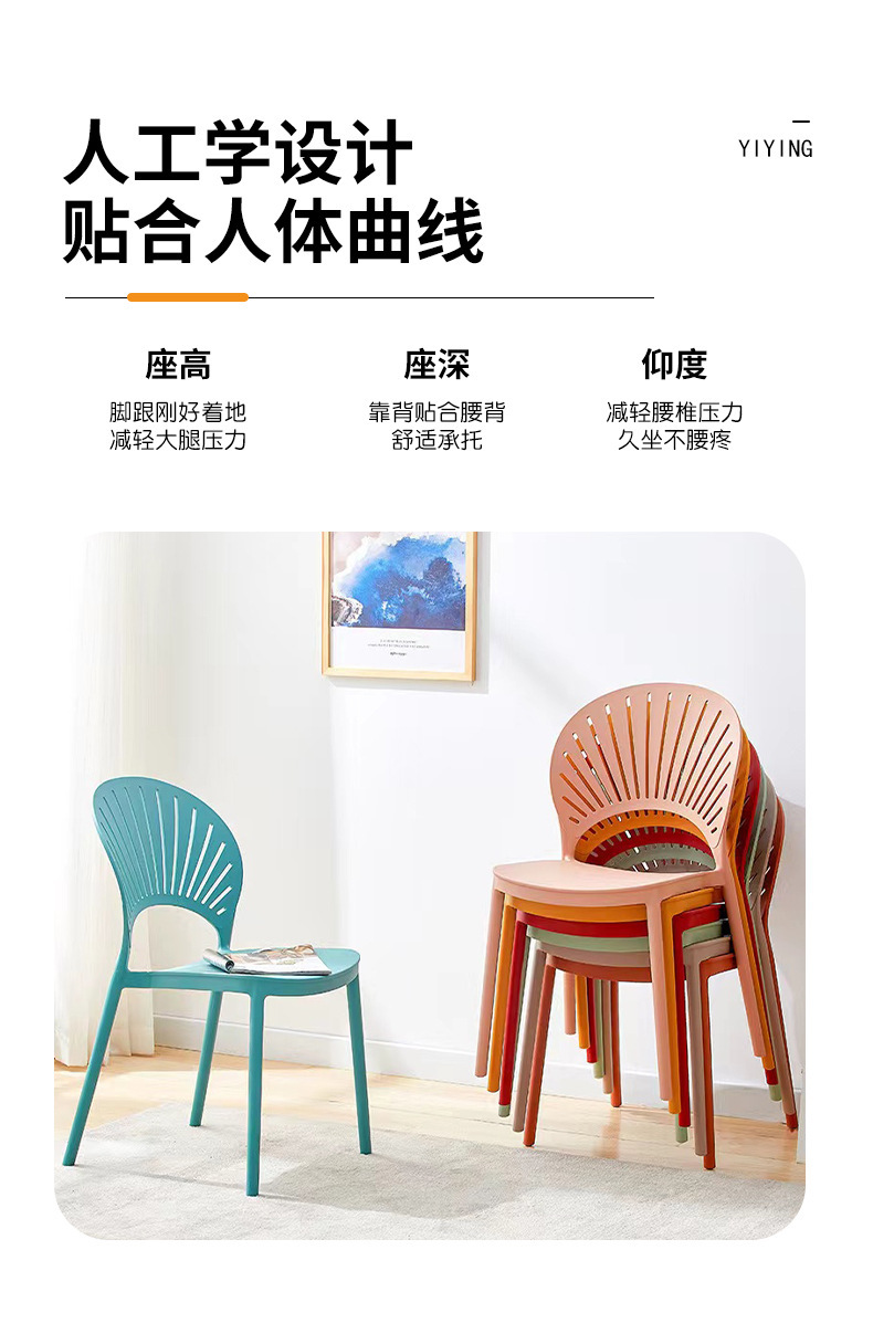 北欧塑料椅子家用扇形椅子客厅多色餐桌椅户外奶茶店椅子酒店餐椅