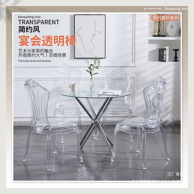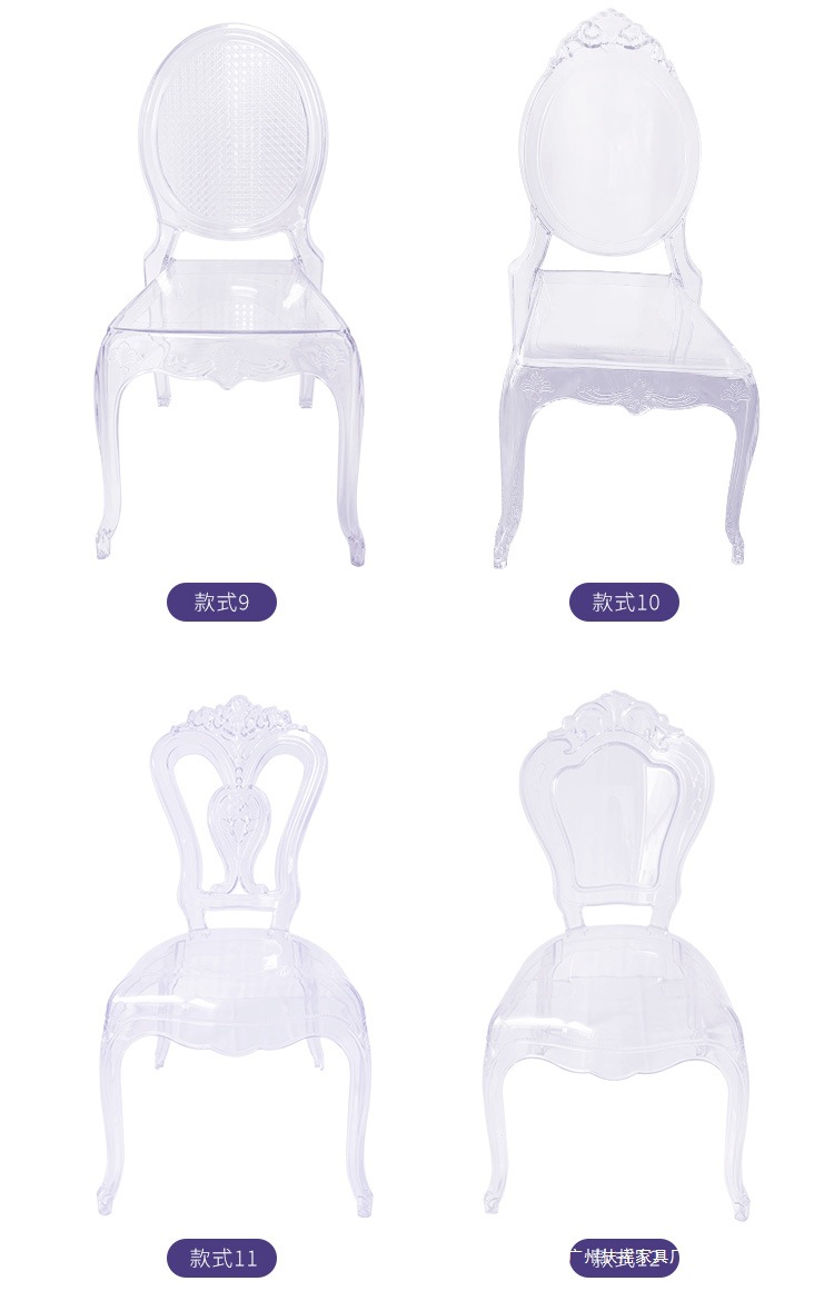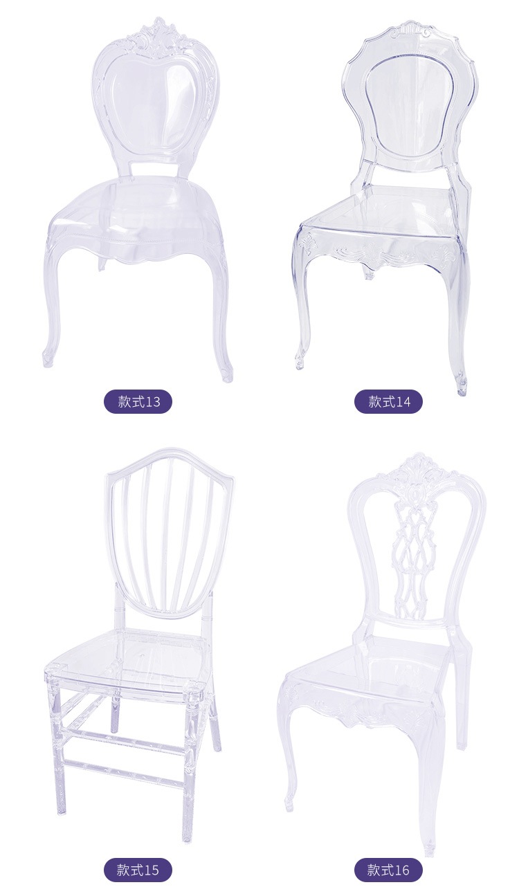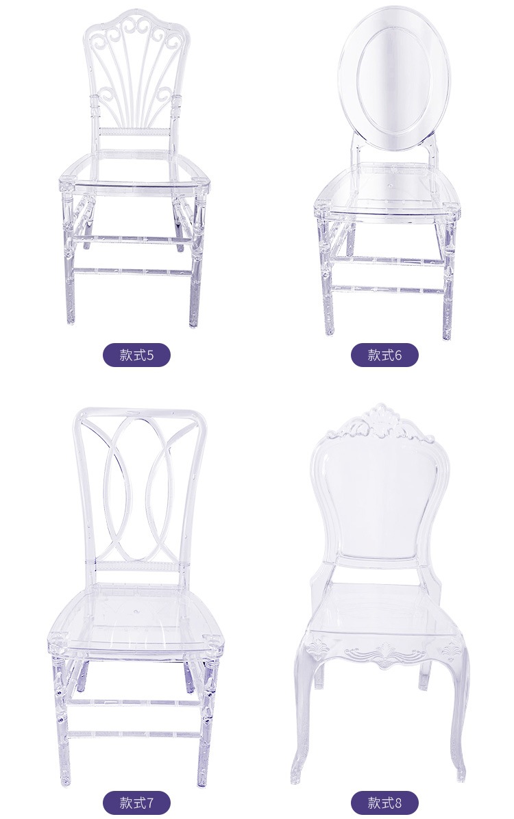 酒店宴会厅亚克力透明水晶椅婚庆礼堂户外塑料拿破仑竹节宫廷椅子