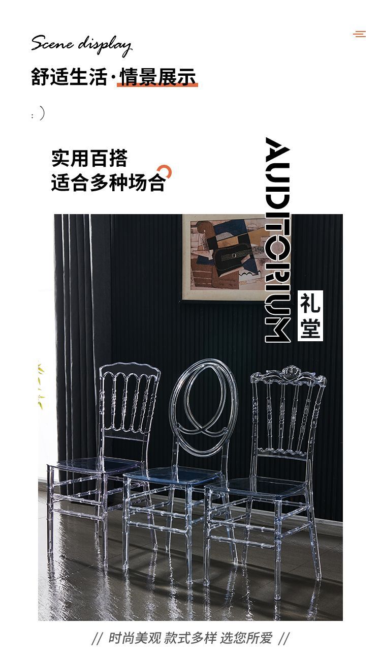 酒店宴会厅亚克力水晶椅户外简约透明竹节椅拿破仑婚庆椅水晶椅子