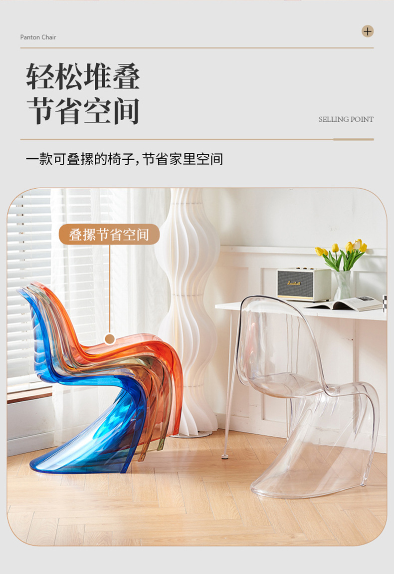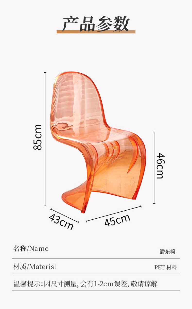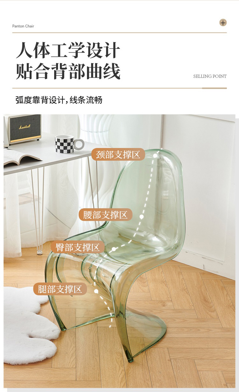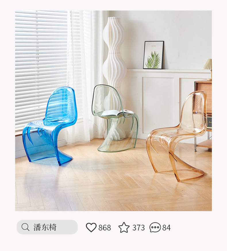 潘东椅北欧ins风餐椅美人椅批发设计师创意S椅简约家用透明椅子