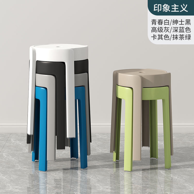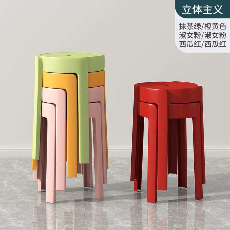 塑料凳子家用加厚圆凳现代简约客厅可叠放摞叠餐桌塑胶高椅子批发