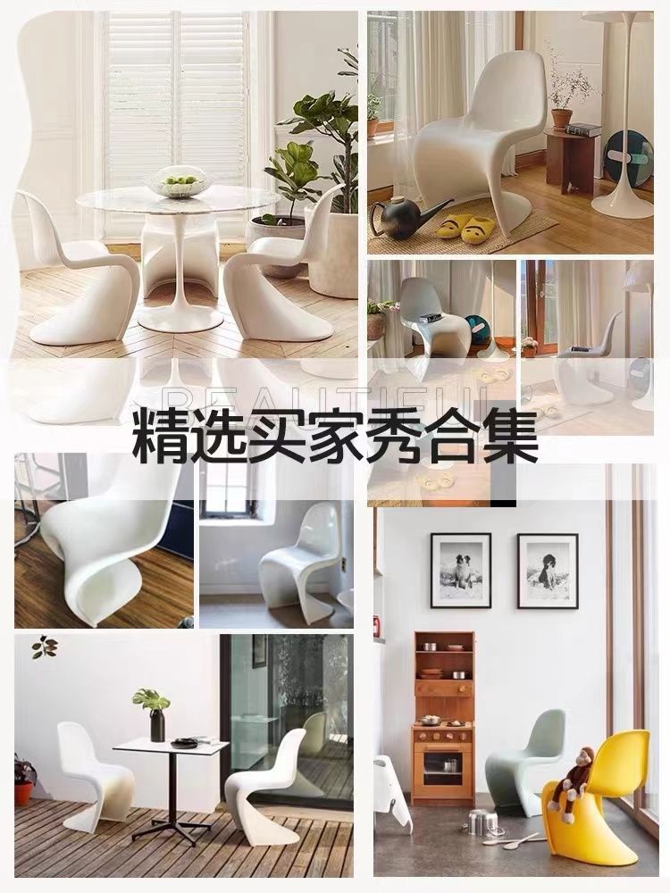 北欧家用餐椅可叠放简约设计师洽谈网红塑料靠背椅潘东椅梳妆凳子