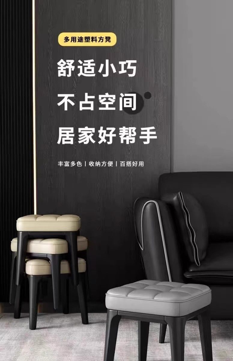 客厅凳子厚塑料矮凳家用小板凳大人方凳可叠放茶几凳软包凳儿童凳