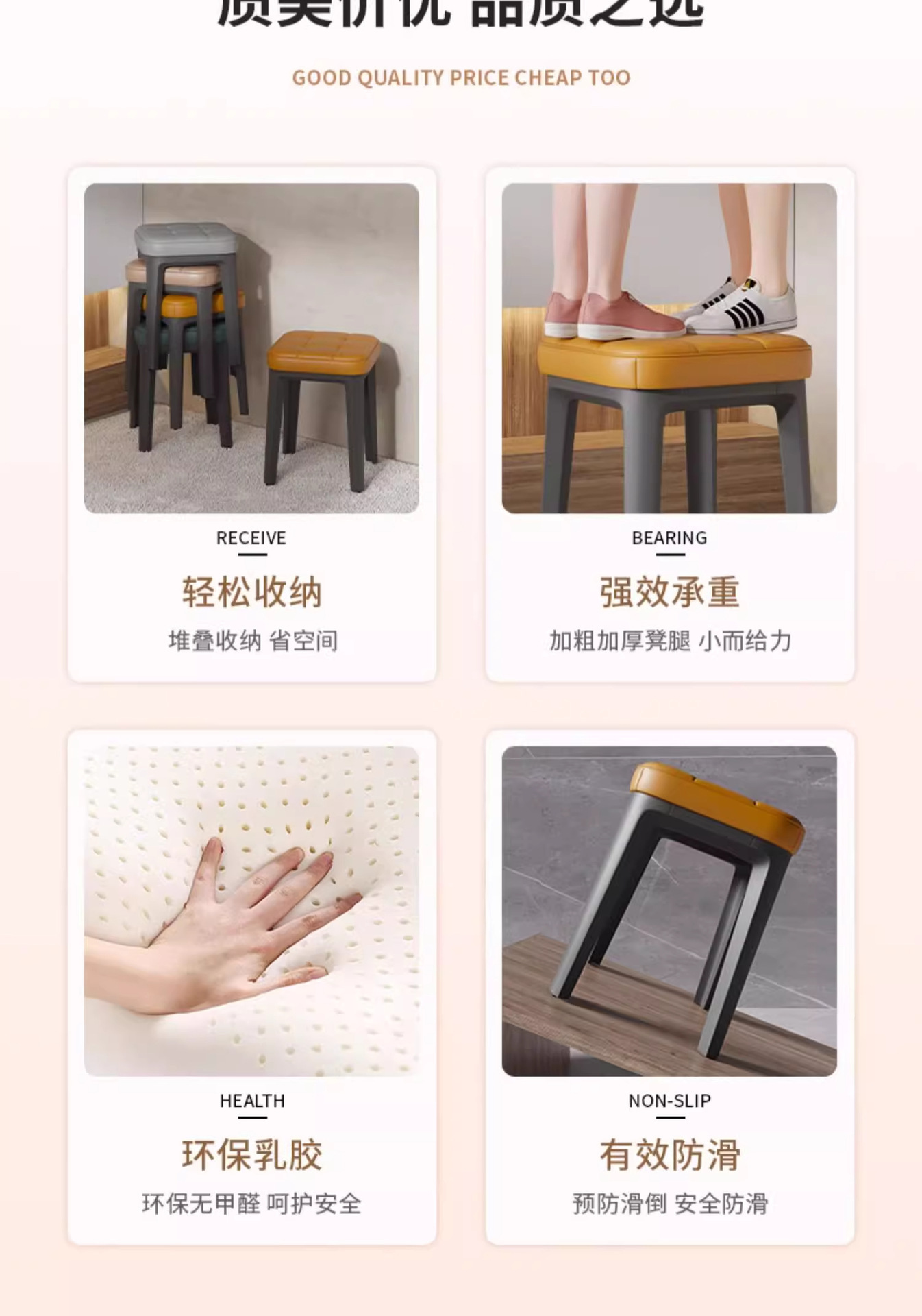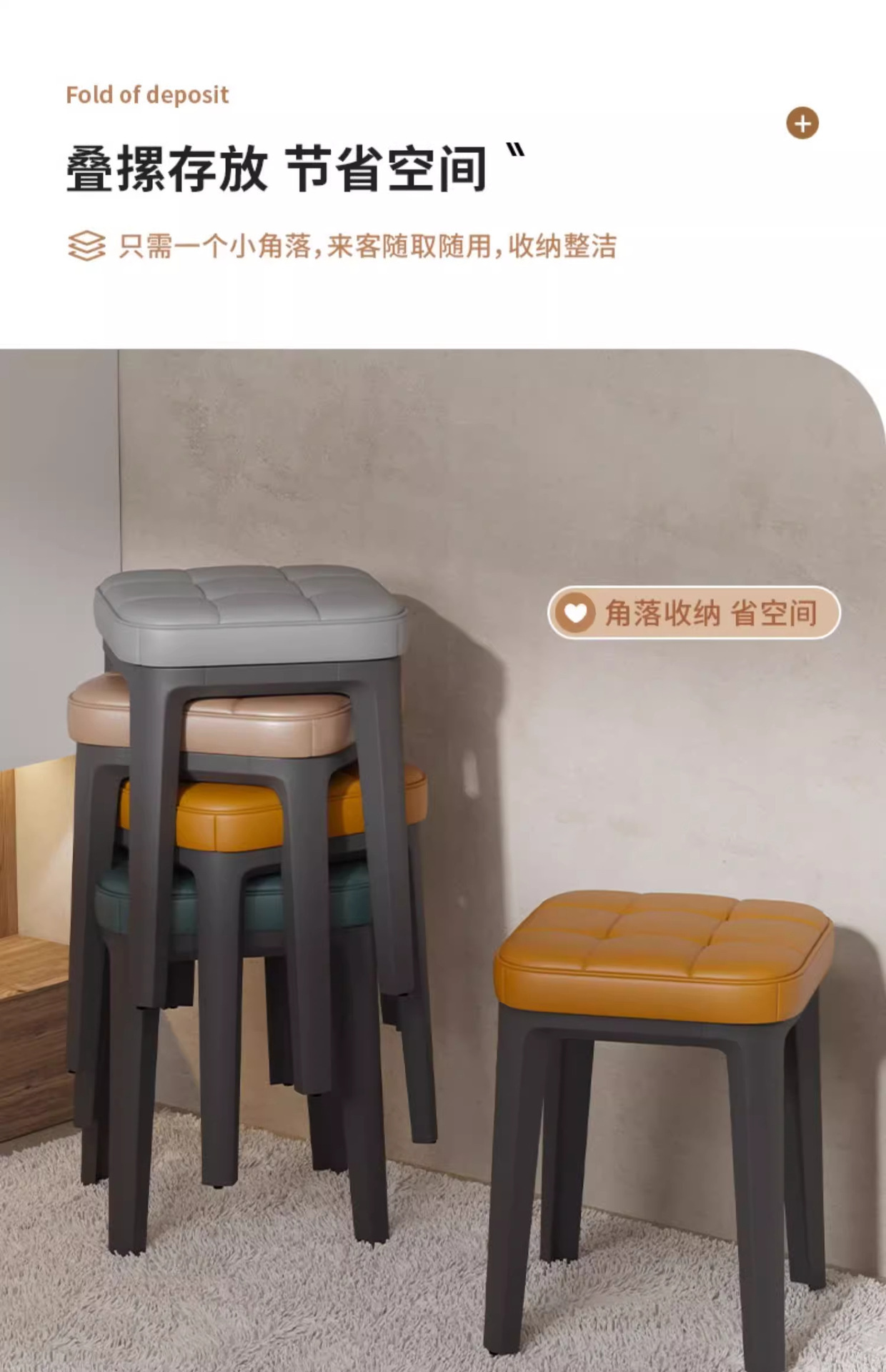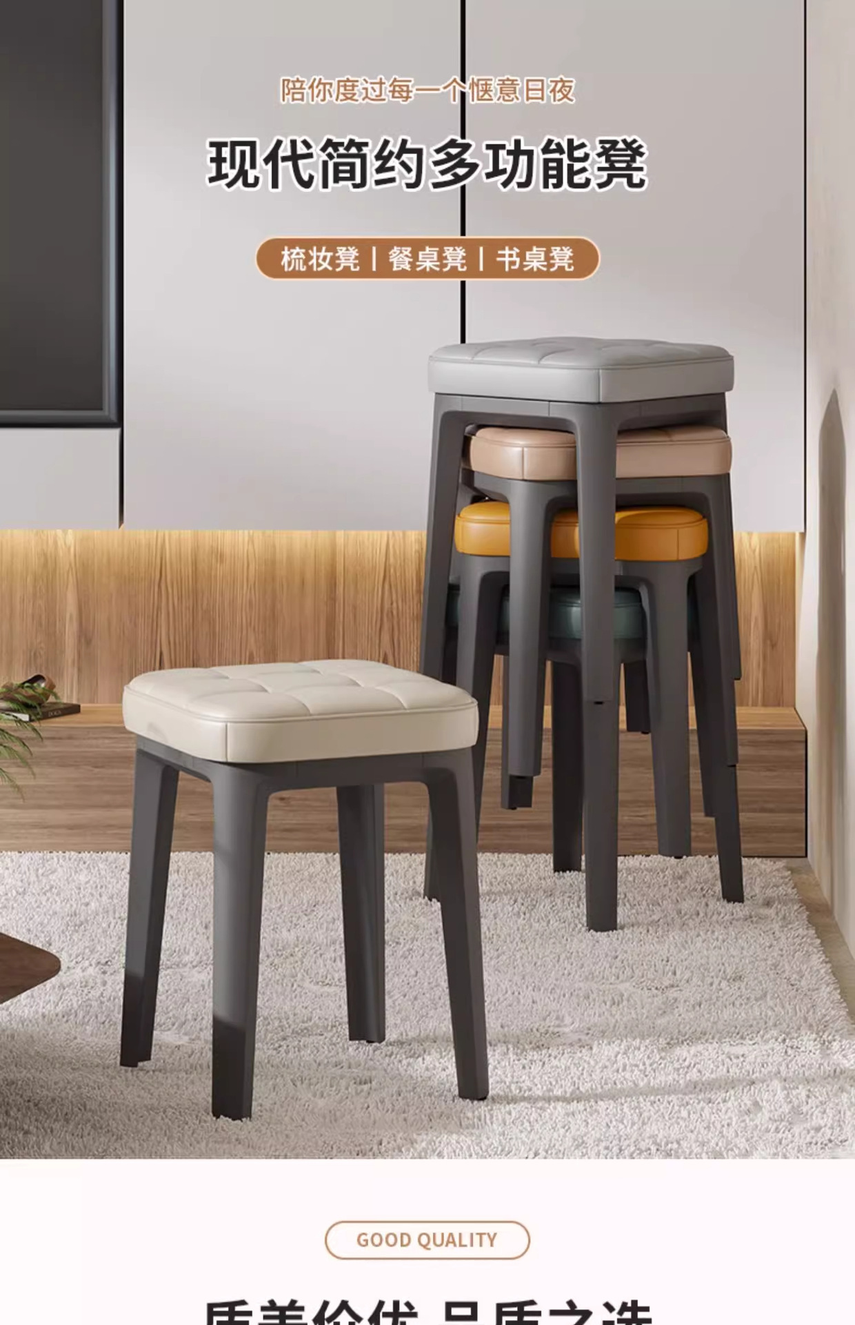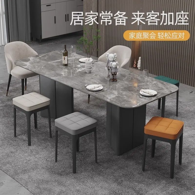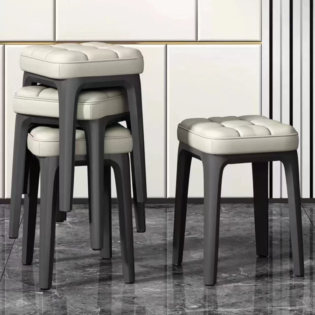 新款软包塑料凳子家用便携式现代简约餐厅椅子可叠放超厚家居椅子