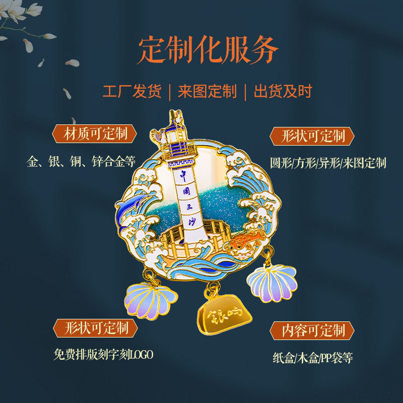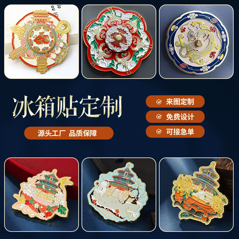 金属冰箱贴定制公司景区文创胸针订制博物馆合金烤漆磁力徽章定做