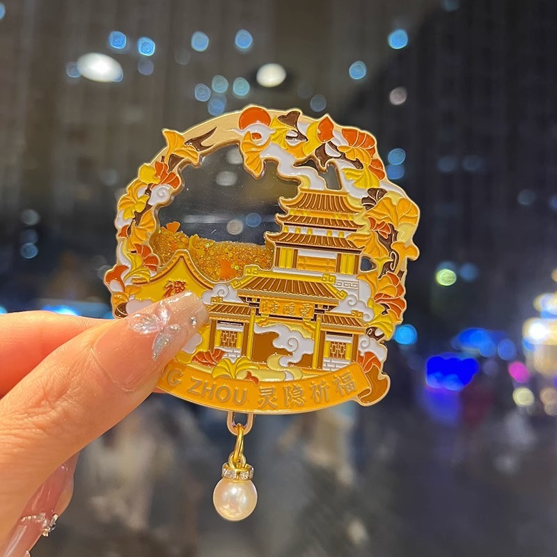 新款城市冰箱贴文创旅游纪念品金属流沙冰箱贴制作夜光磁贴高级伴