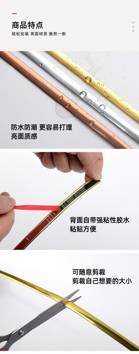 装饰条墙纸自粘美缝条压3d立体瓷砖贴墙布收边背景墙线条家居轻奢