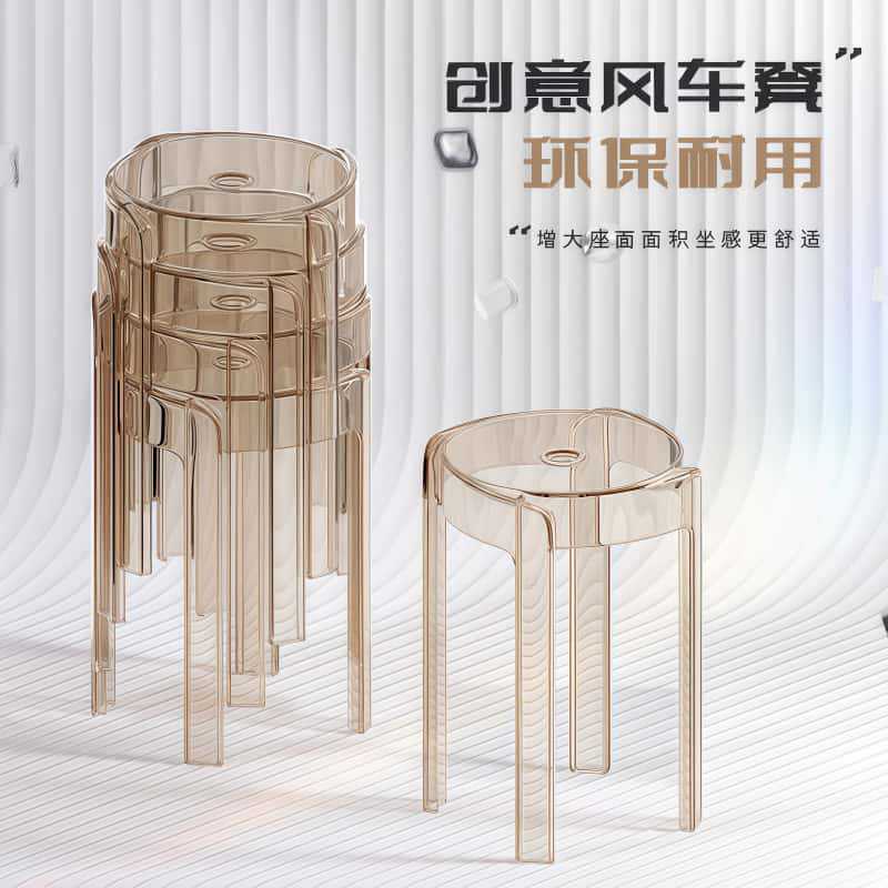 北欧透明塑料凳子亚克力加厚家用风车凳客厅简约餐桌可叠放板凳高