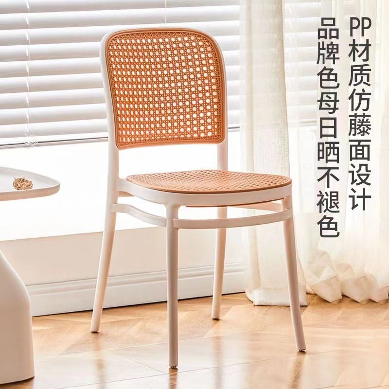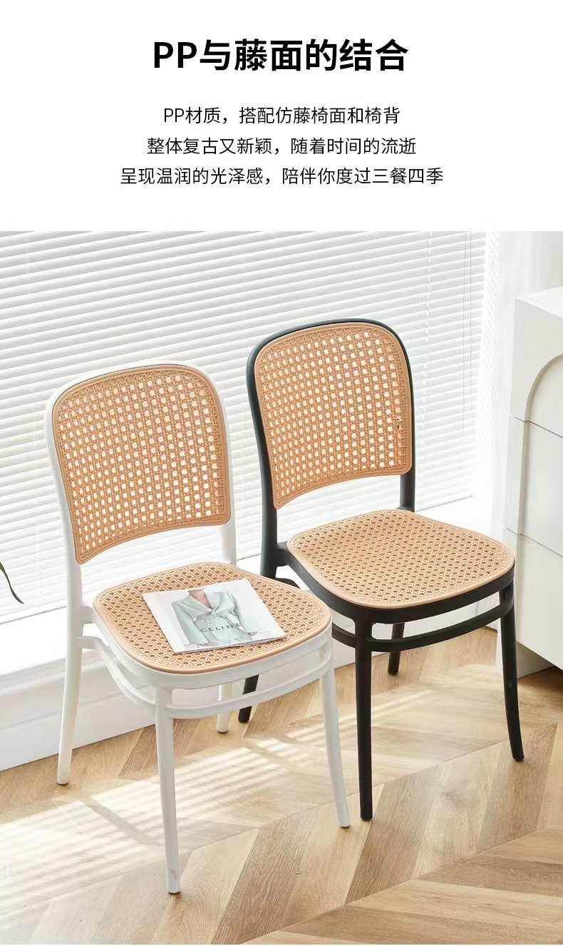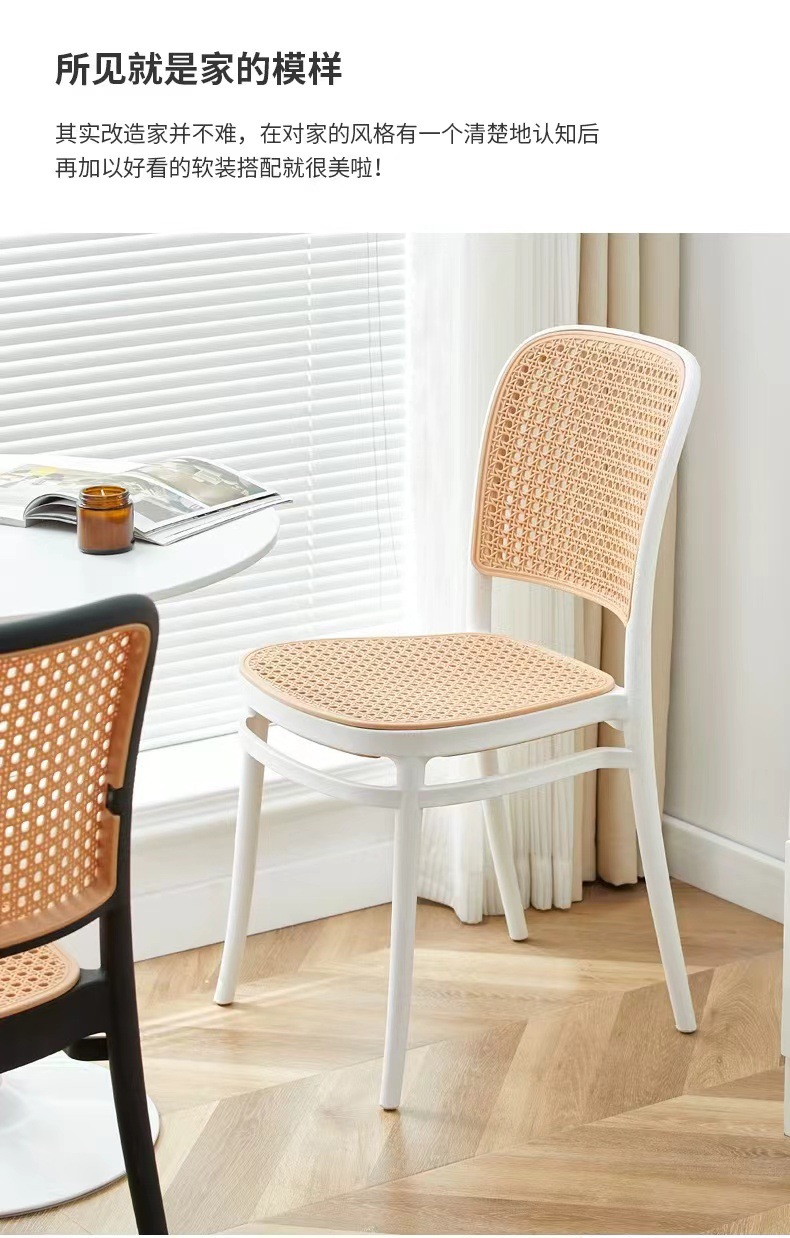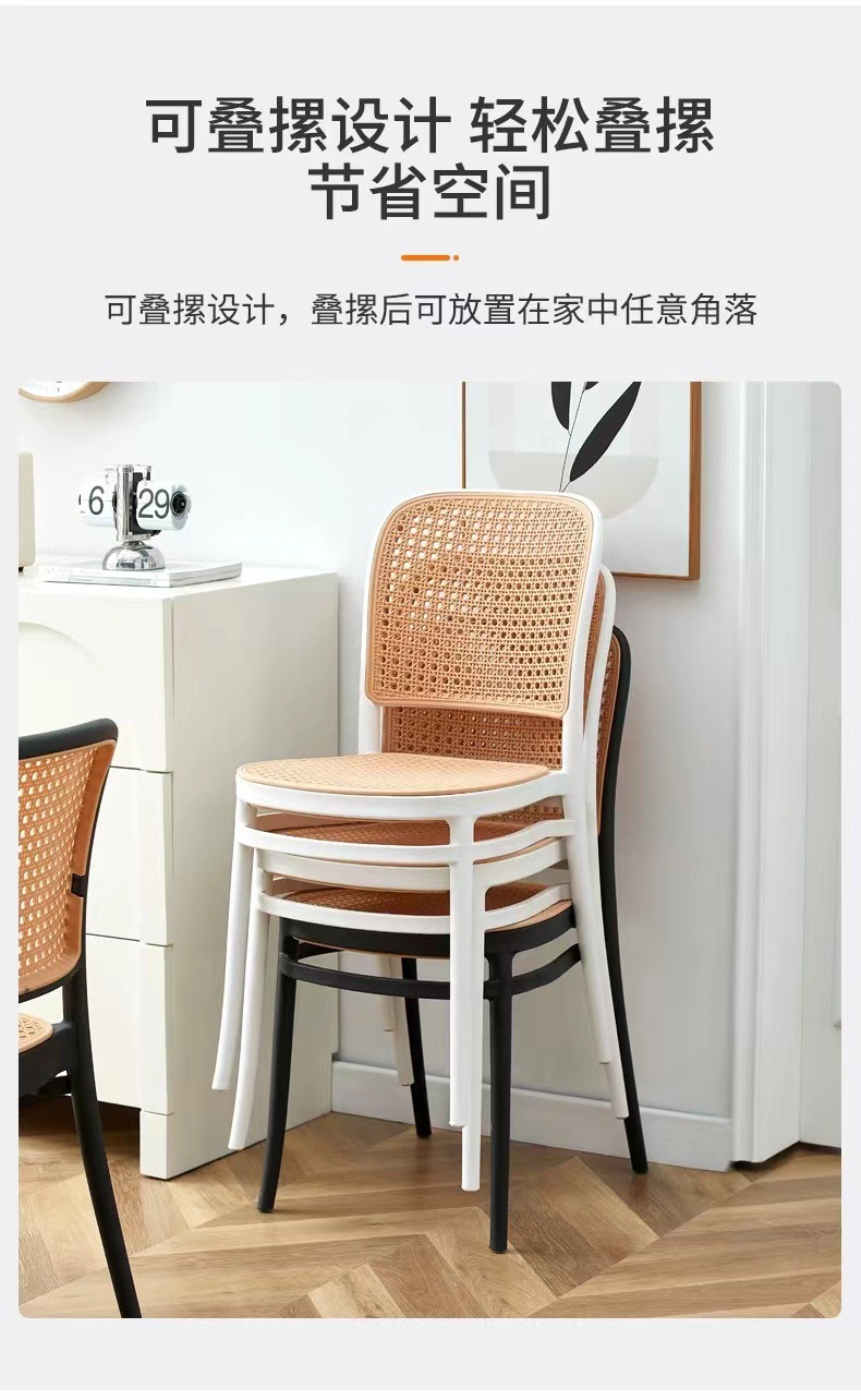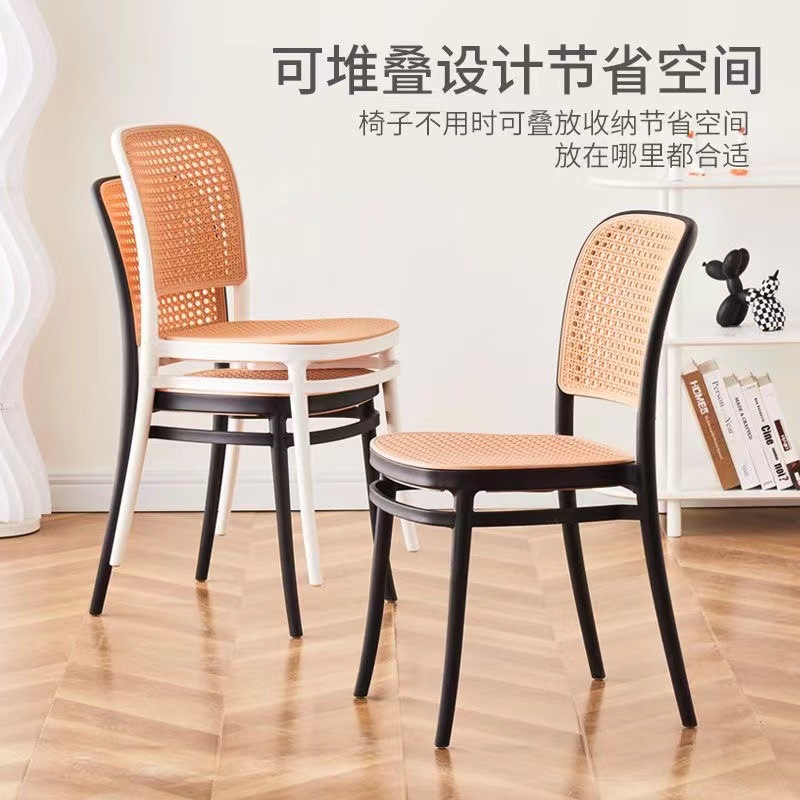 靠背家用简约藤椅户外庭院凳子可叠放餐椅阳台休闲餐桌椅藤编椅子