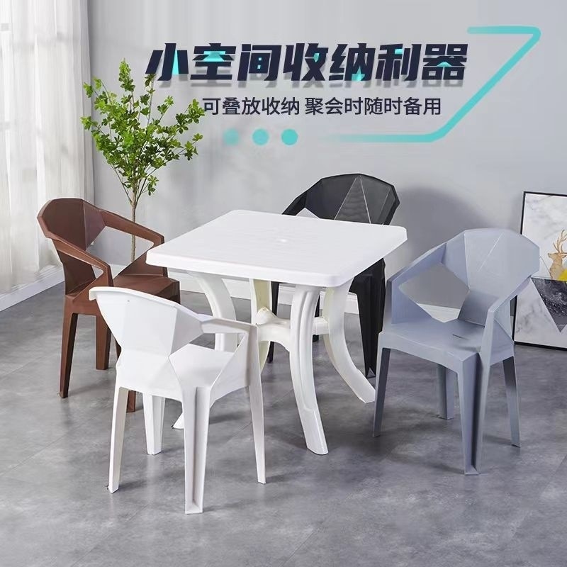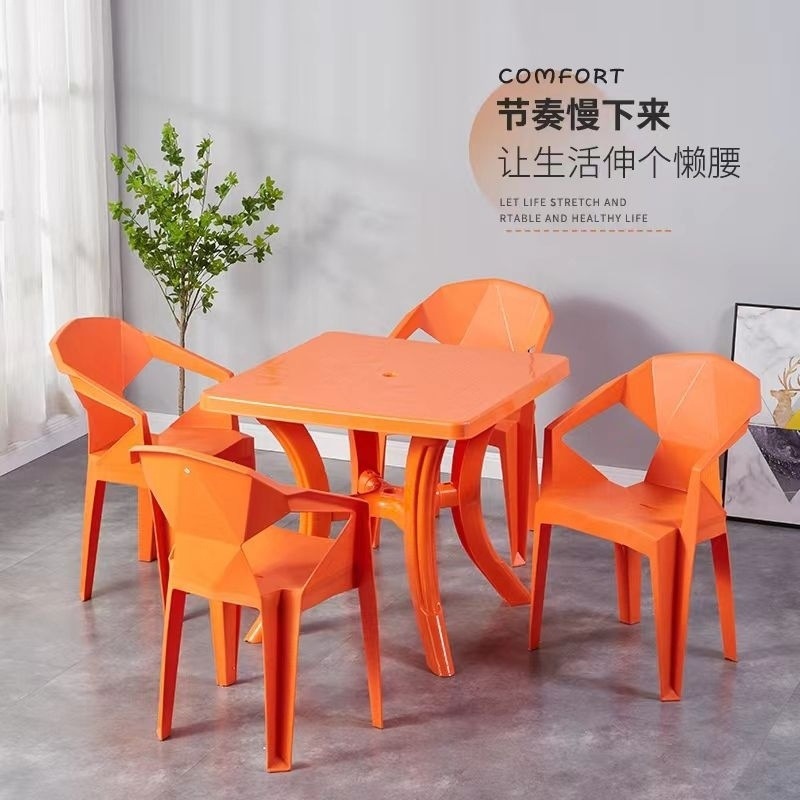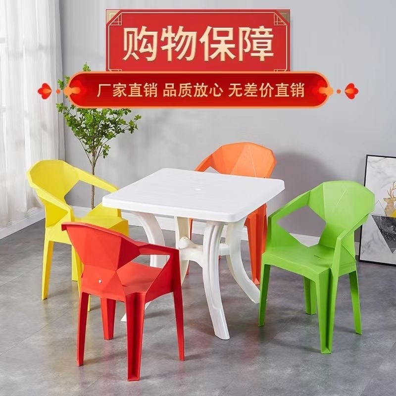 夜市大排档熟胶加厚塑料沙滩靠背椅子户外啤酒烧烤休闲方圆桌组合