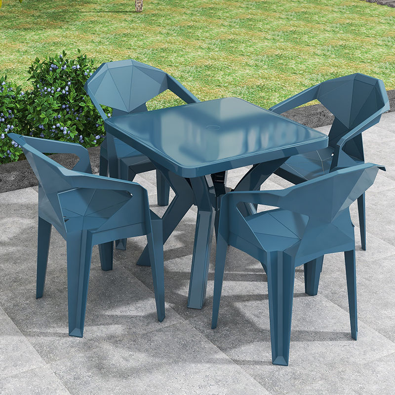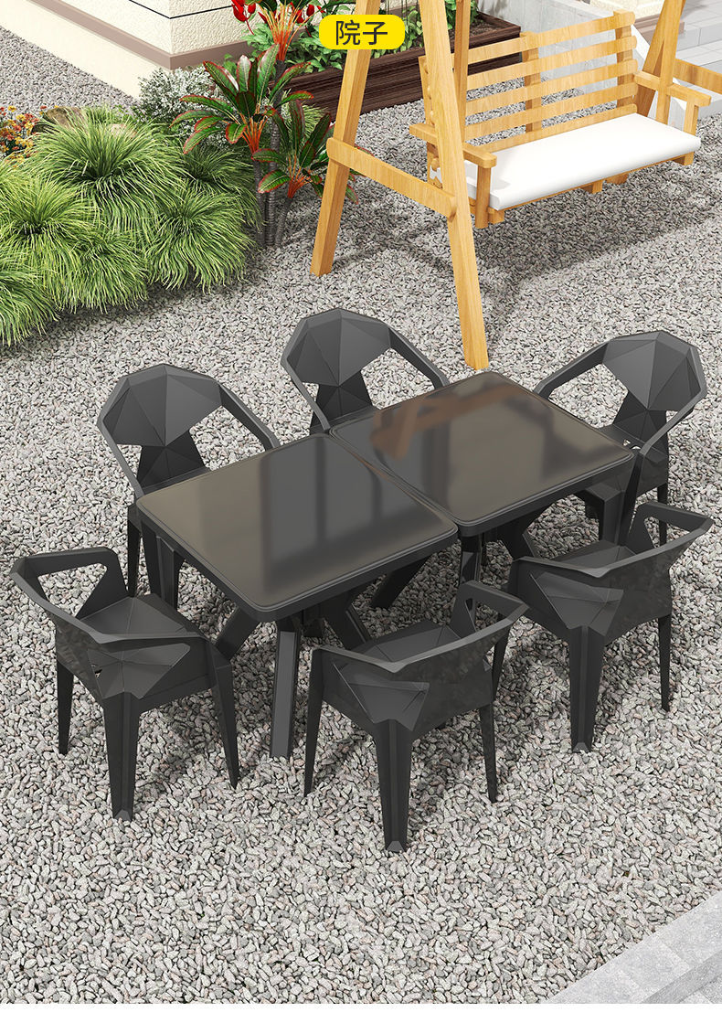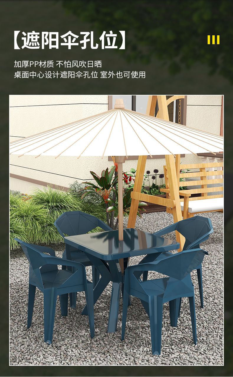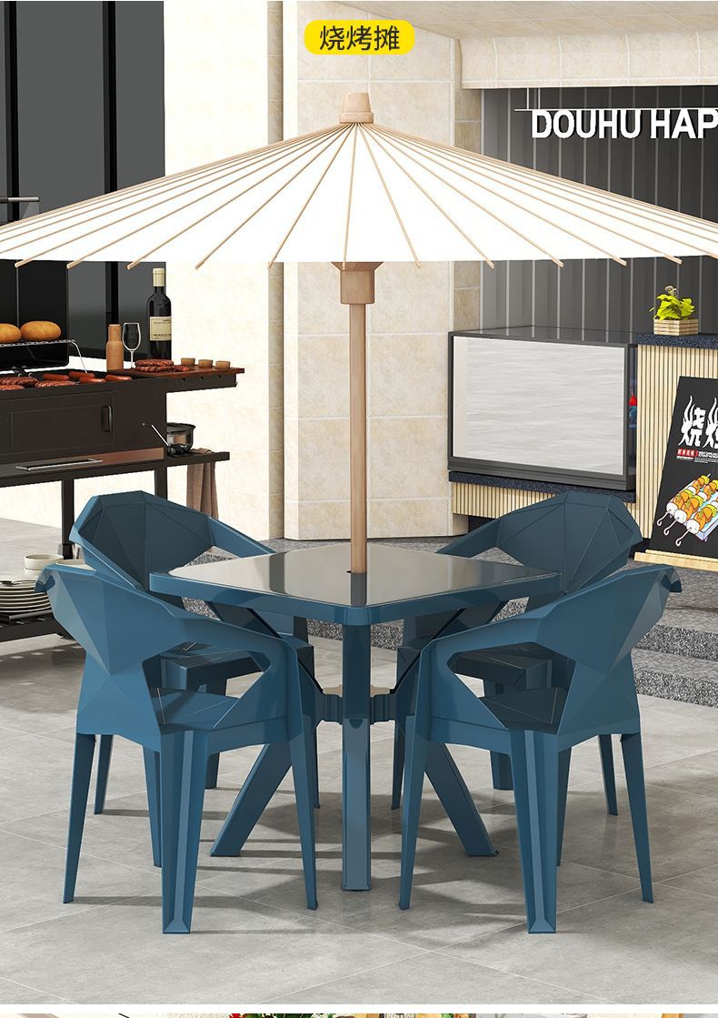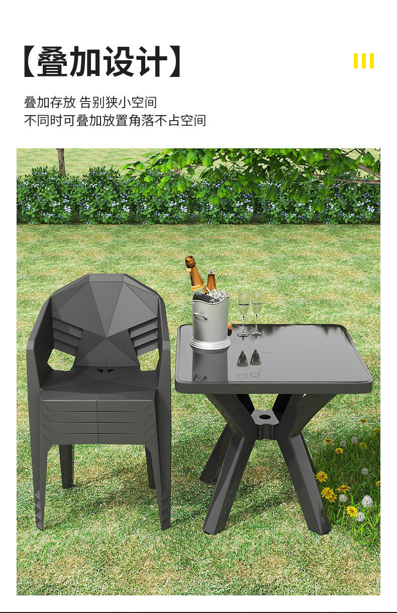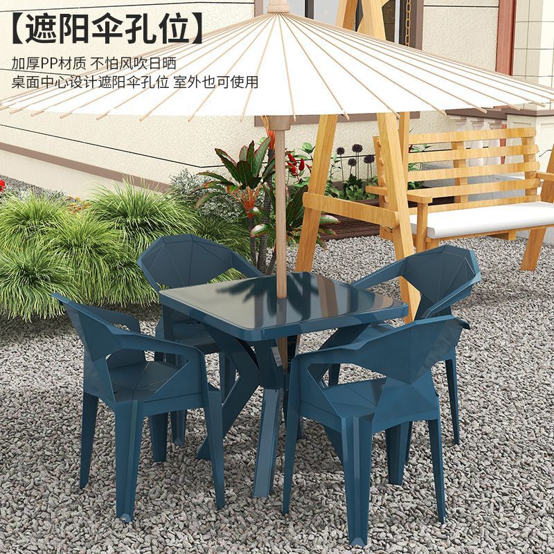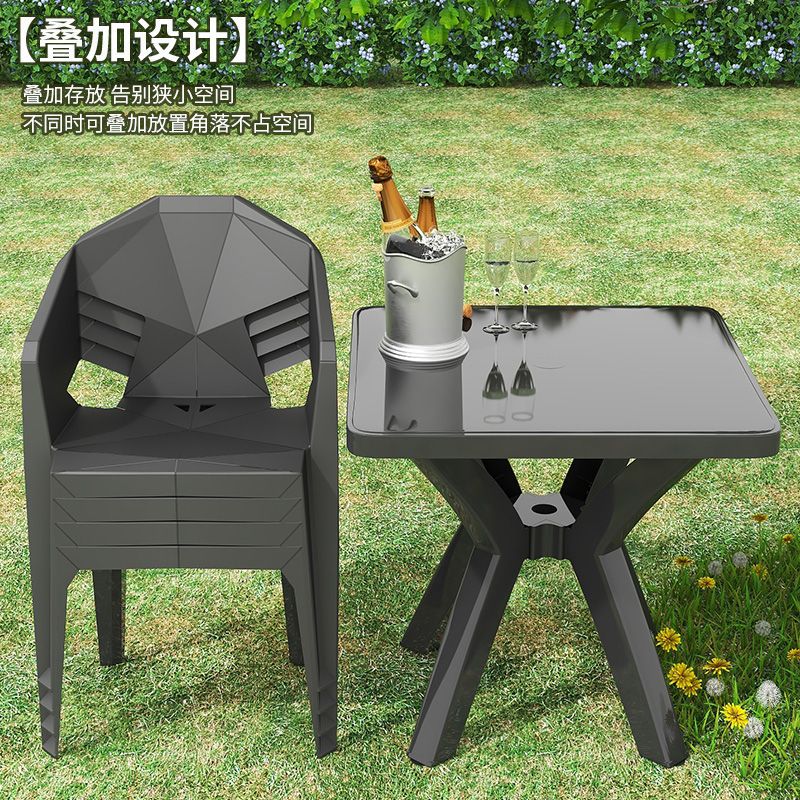 户外阳台夜市大排档加厚熟胶塑料桌椅户外庭院靠背椅防水防潮方桌