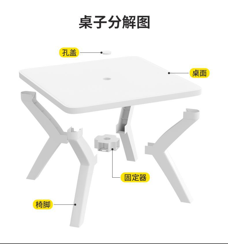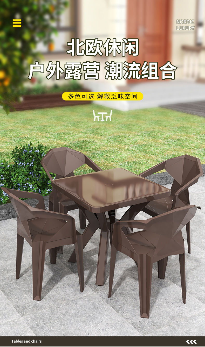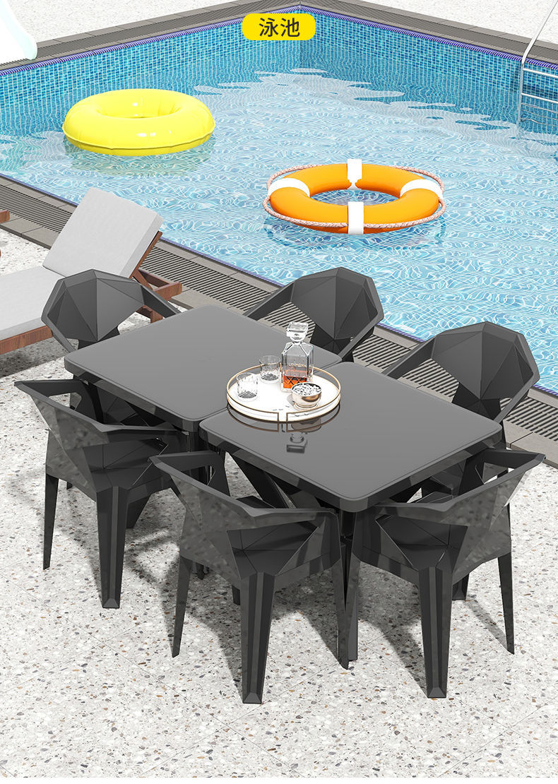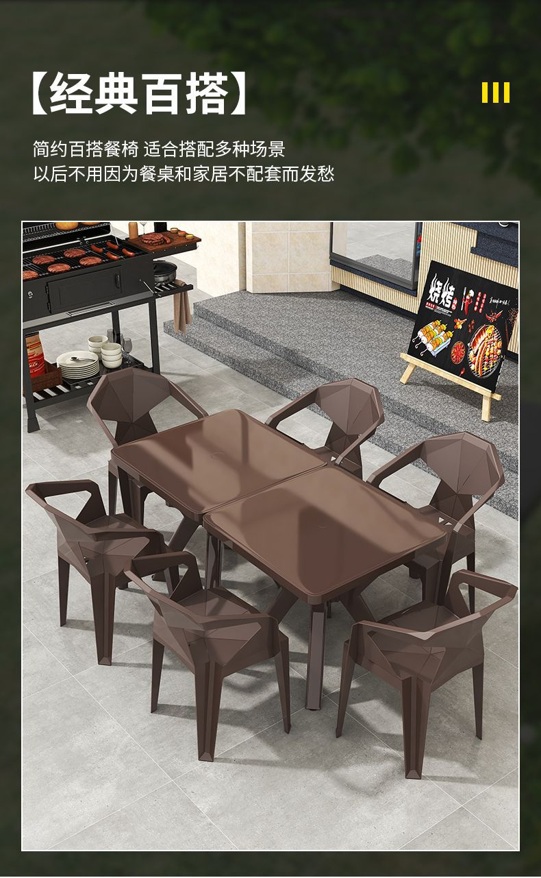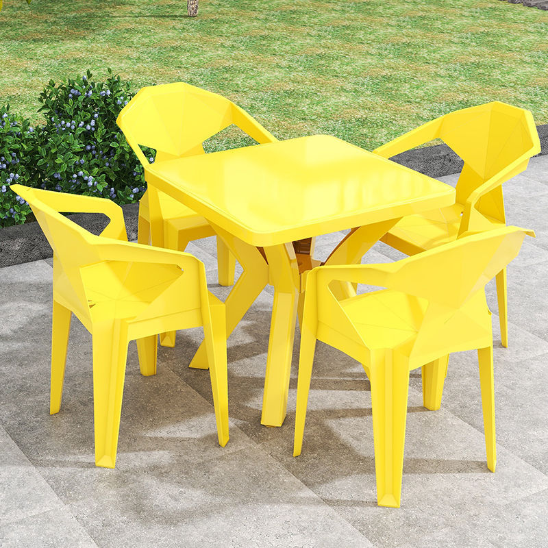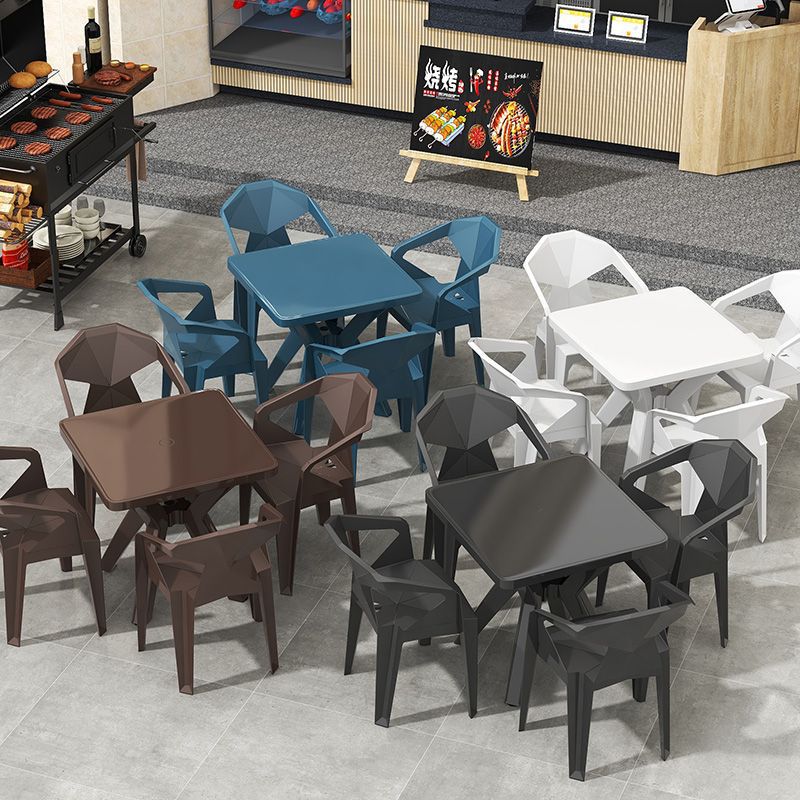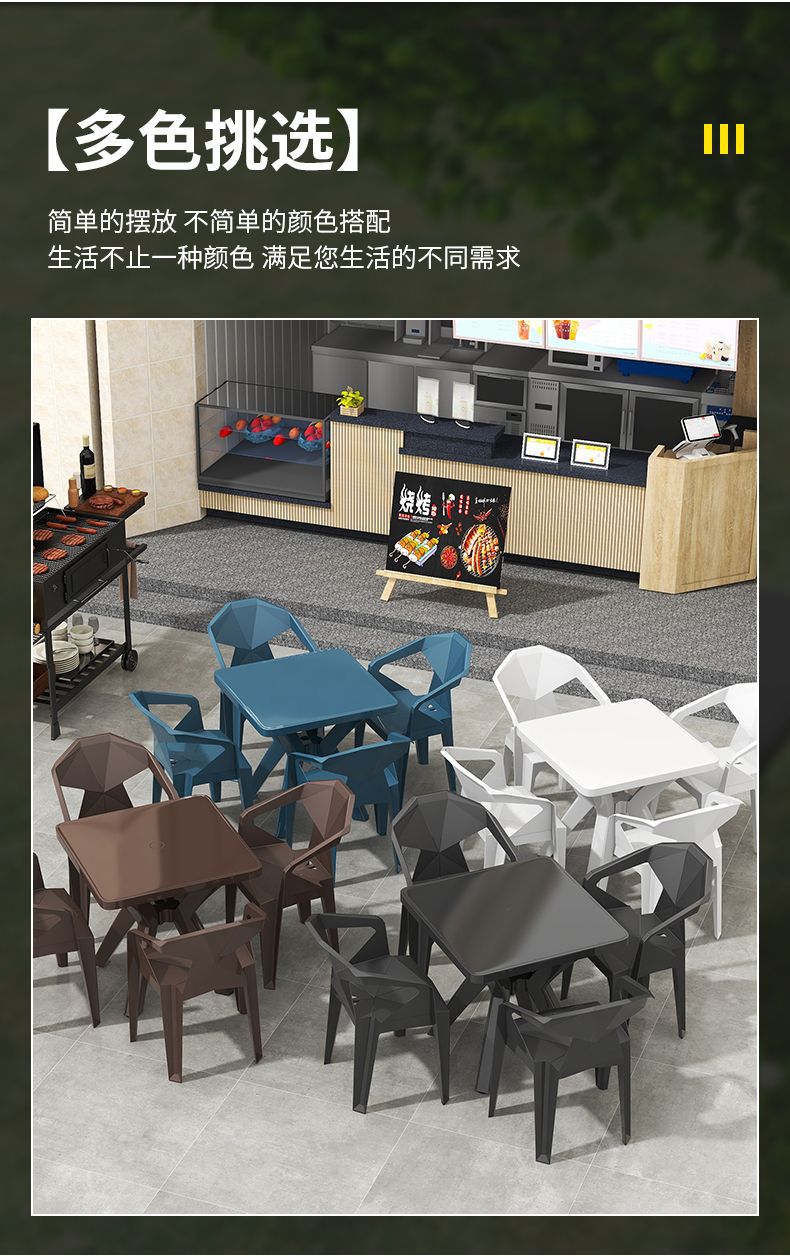 户外阳台夜市大排档加厚熟胶塑料桌椅户外庭院靠背椅防水防潮方桌