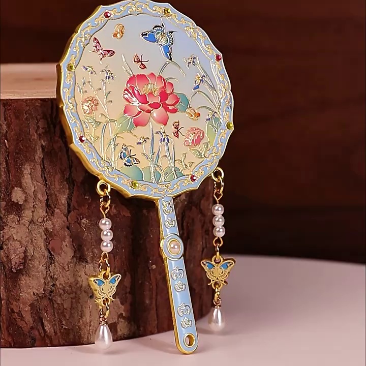 原创花颜悦色金属手持化妆镜中式纪念品伴手礼送闺蜜生日礼物礼品
