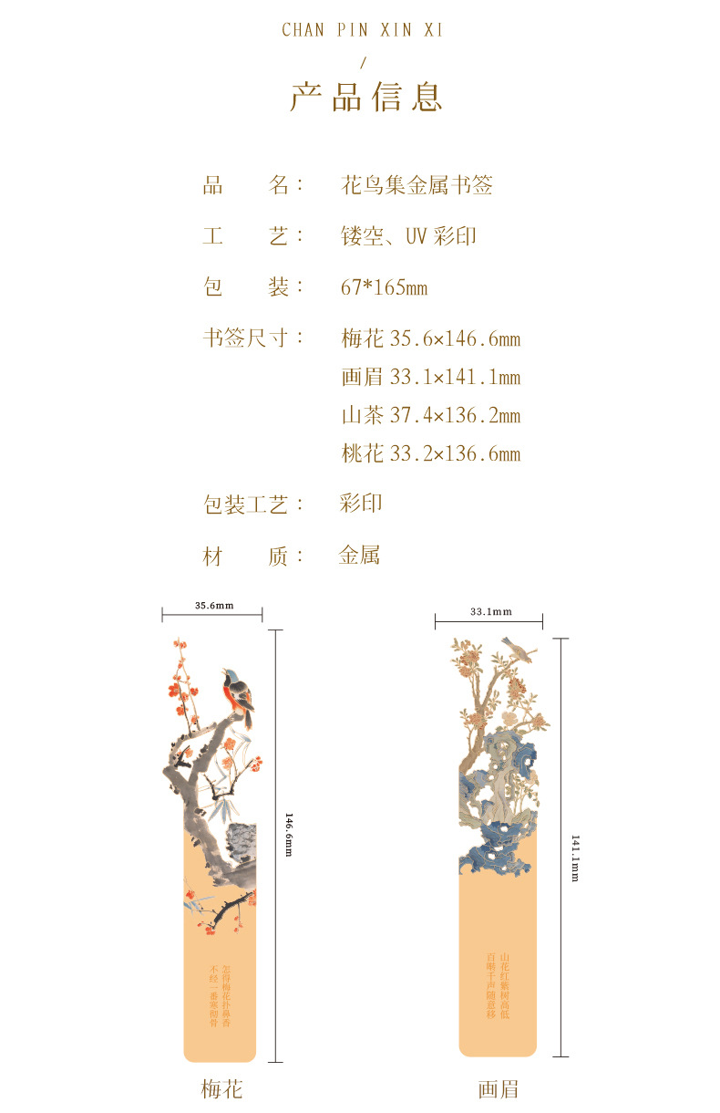 花鸟集金属文创书签中国风礼盒小礼品创意纪念学生毕业教师节礼物
