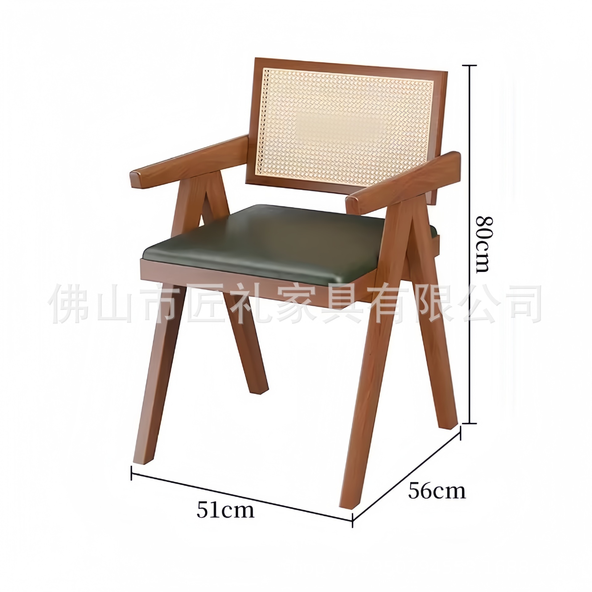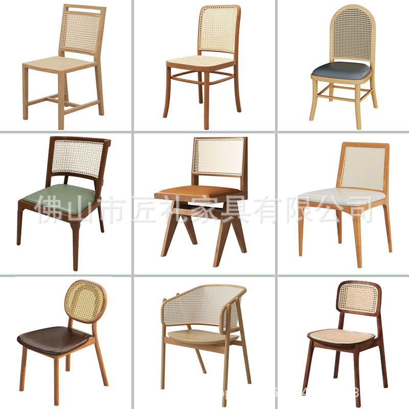日式藤编餐椅民宿酒店休闲实木餐厅藤椅北欧奶茶店商用靠背椅子