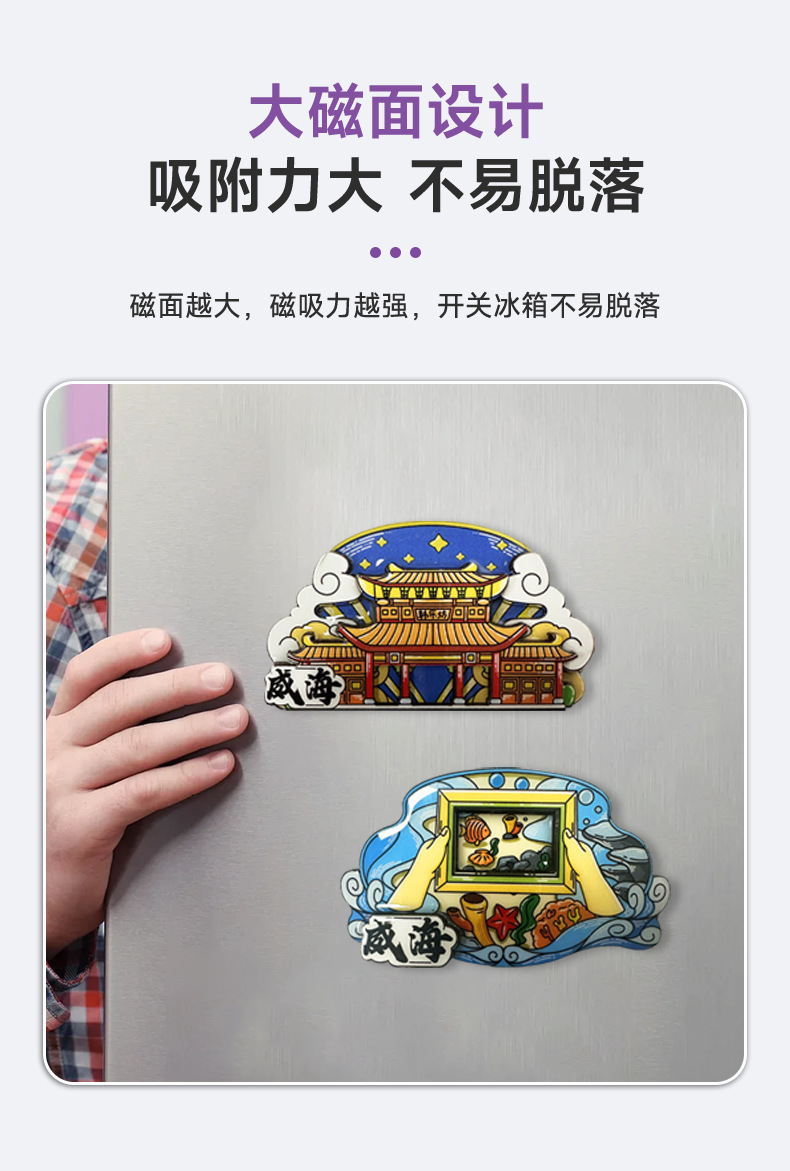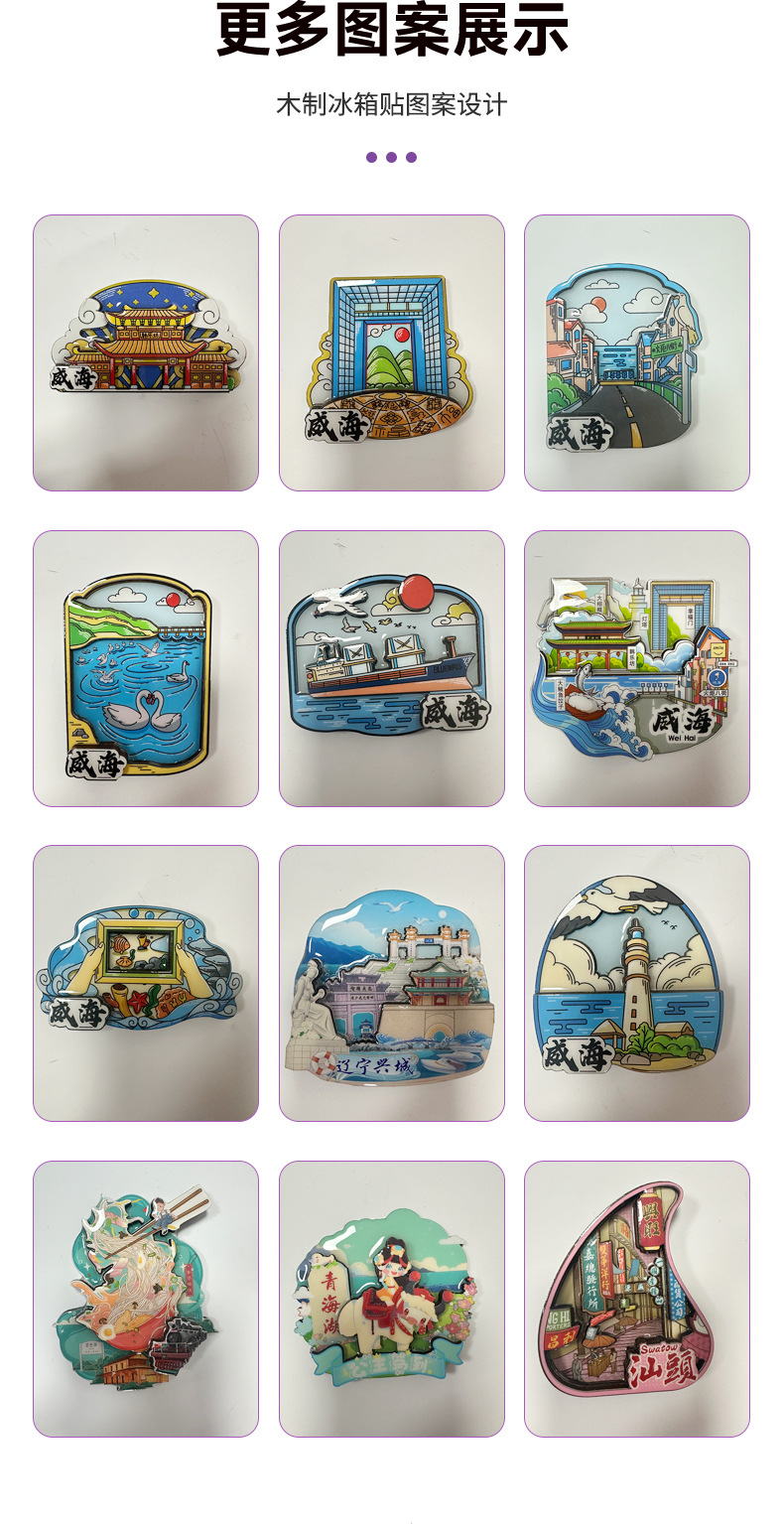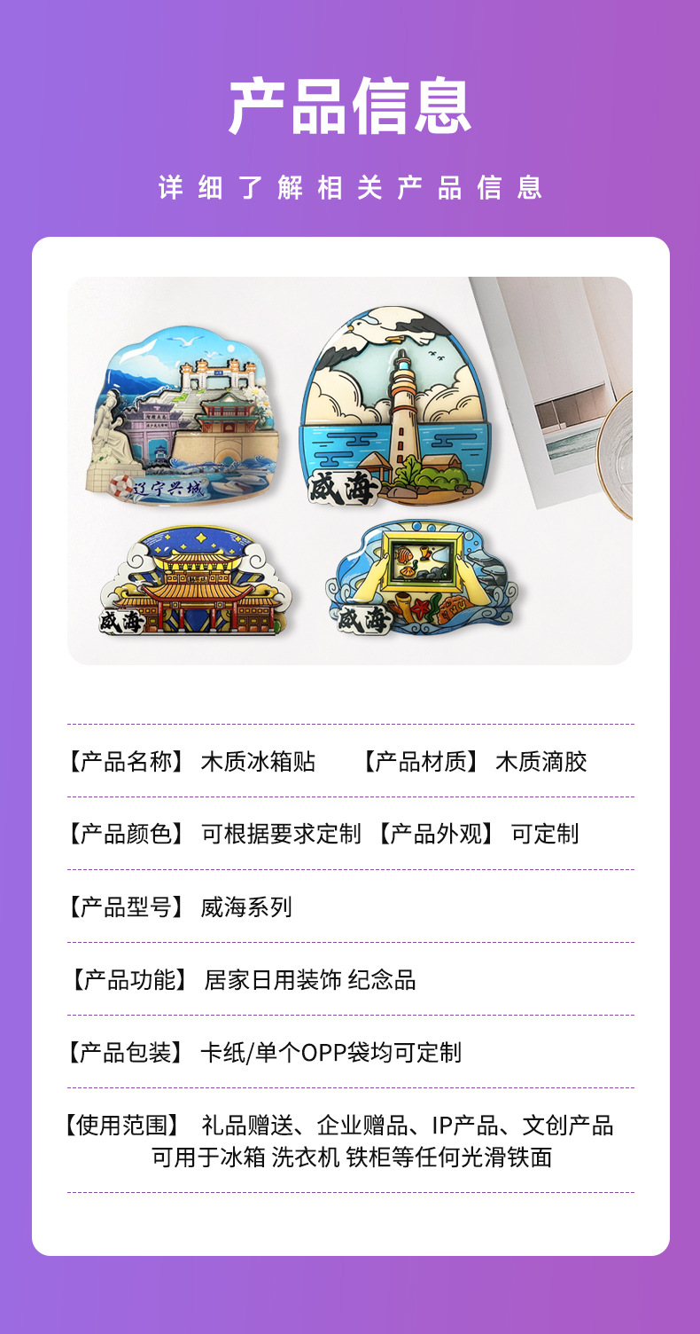 威海景点木质冰箱贴磁贴纪念品磁性贴定制中国旅游文创礼品冰箱贴