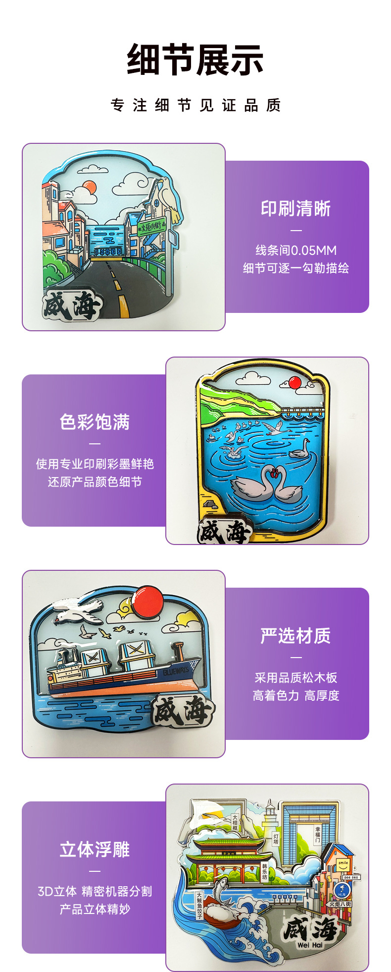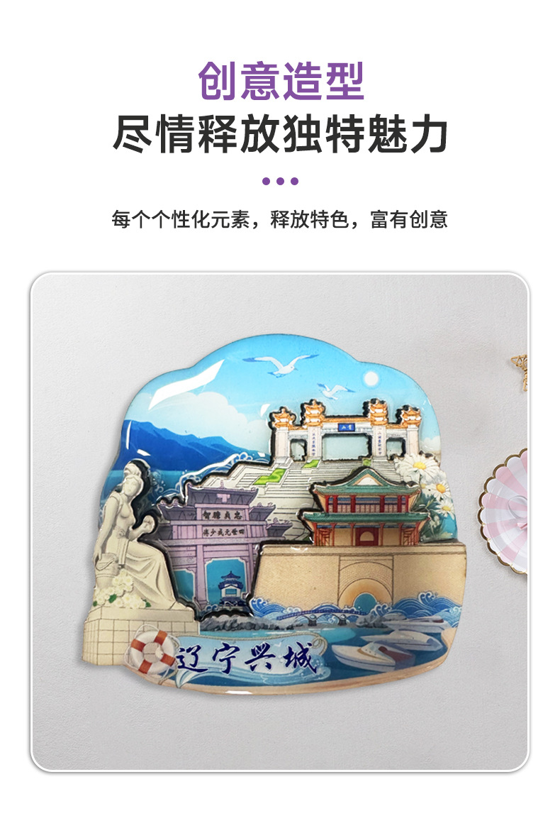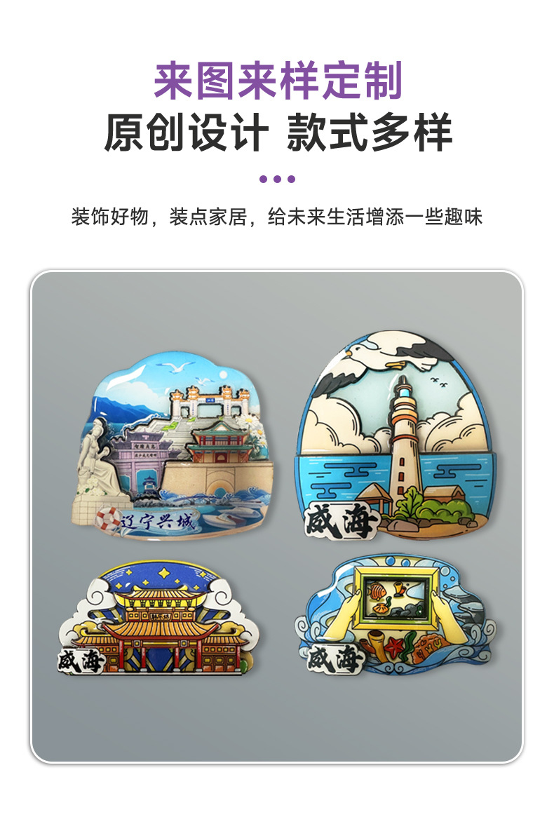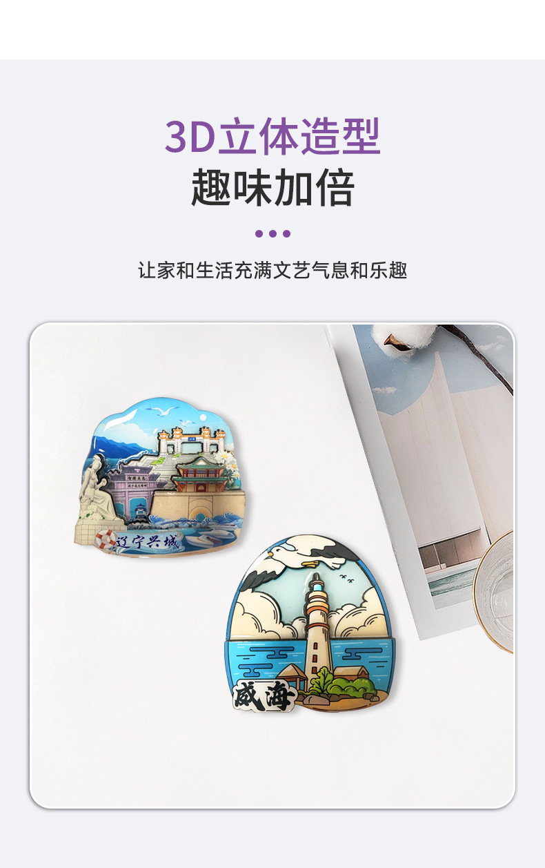威海景点木质冰箱贴磁贴纪念品磁性贴定制中国旅游文创礼品冰箱贴