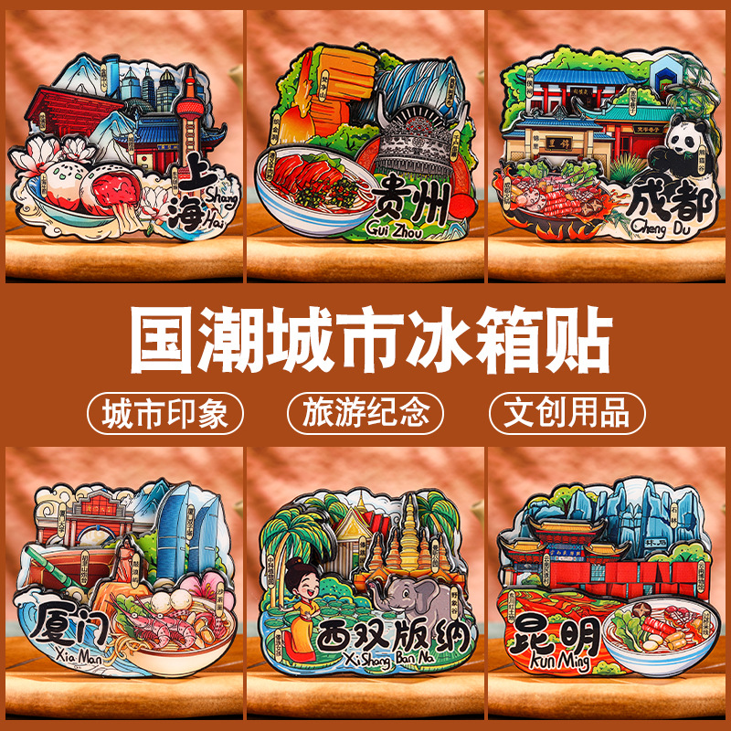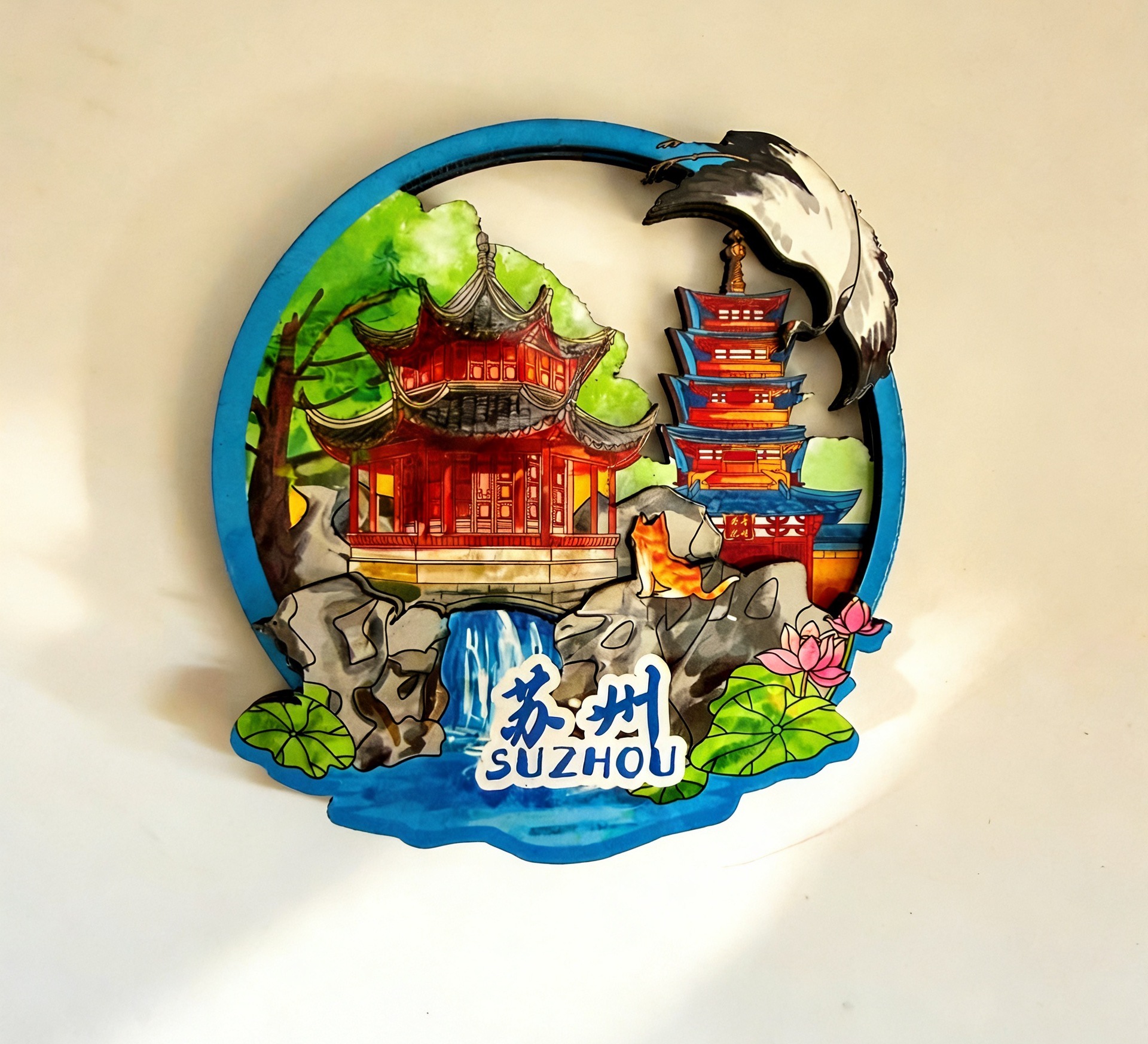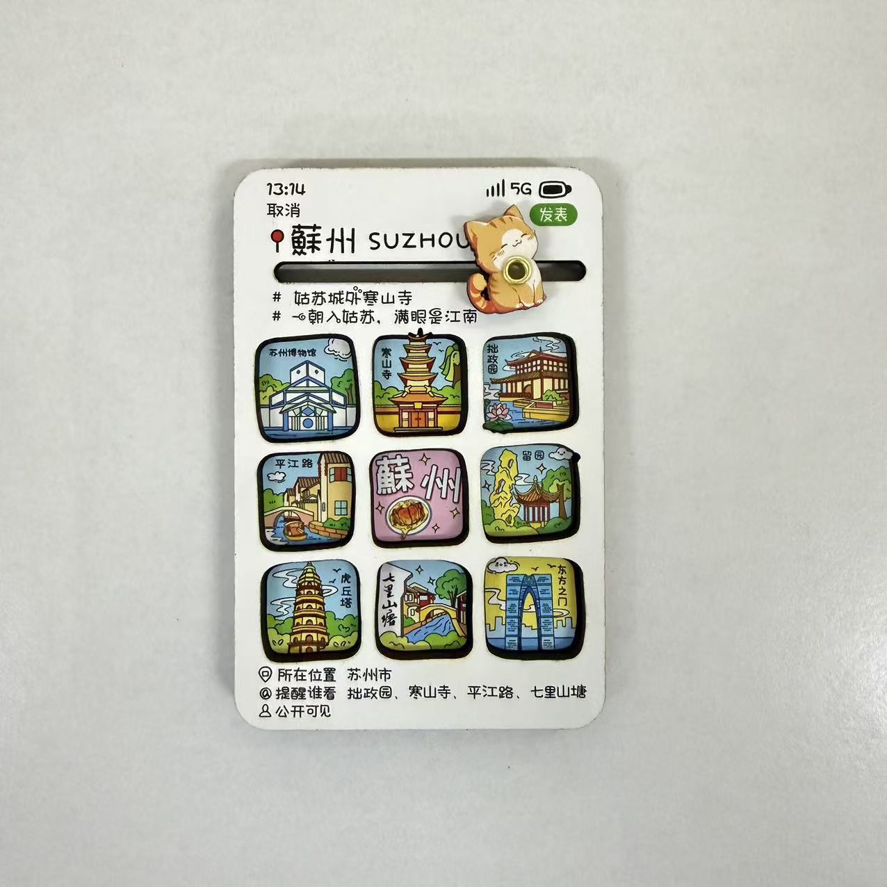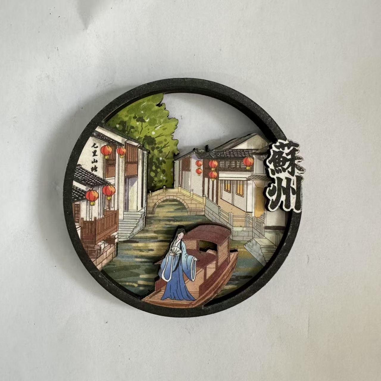 国潮城市苏州冰箱贴木质礼品磁吸装饰贴苏州旅游纪念品文创冰箱贴