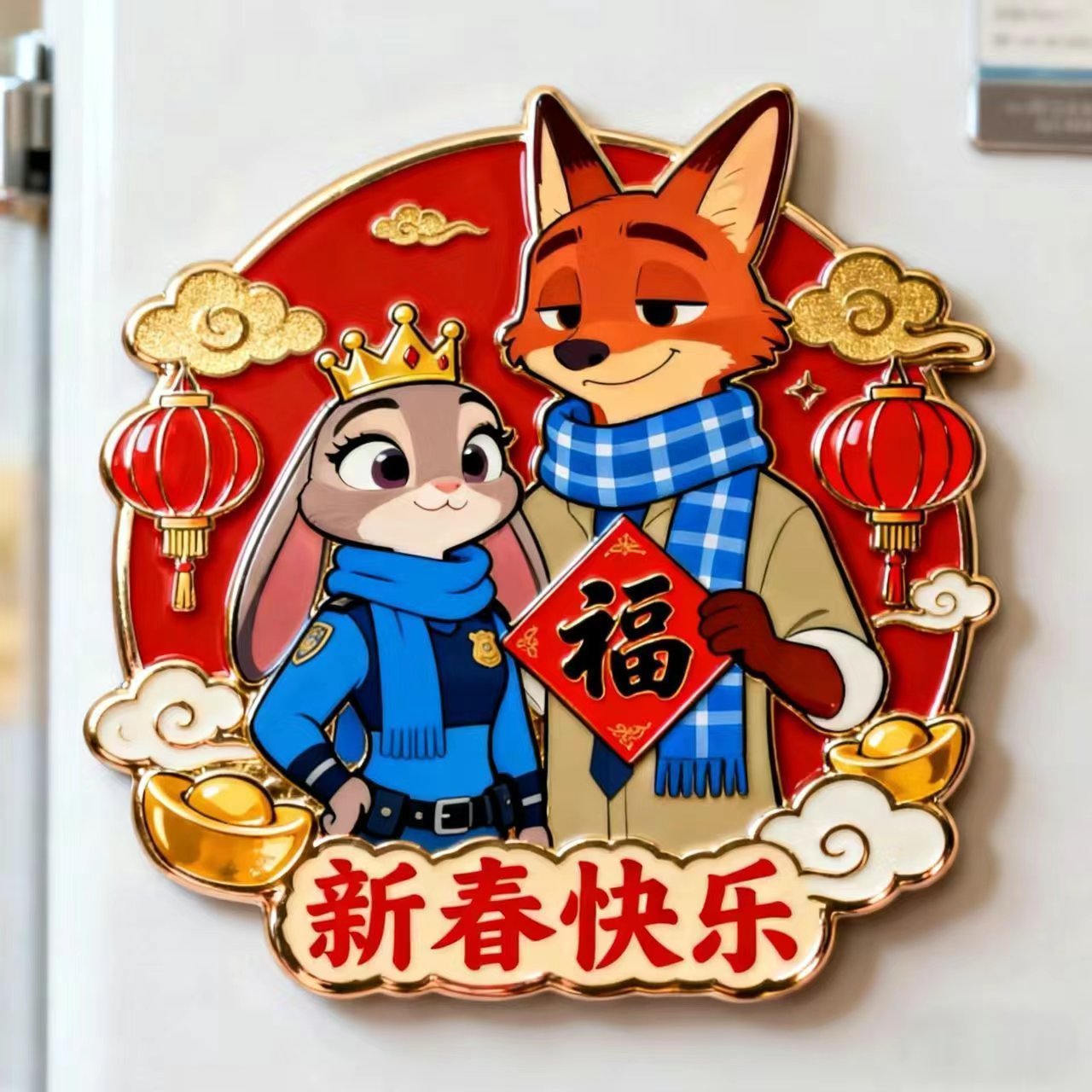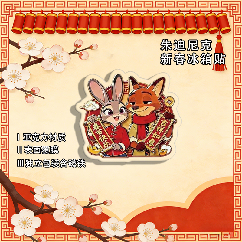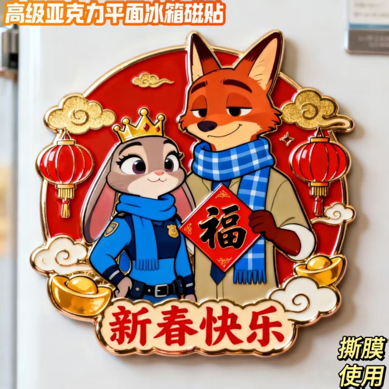 疯狂动物城2-尼克朱迪CP新年款高颜值亚克力磁吸平面冰箱贴祝福