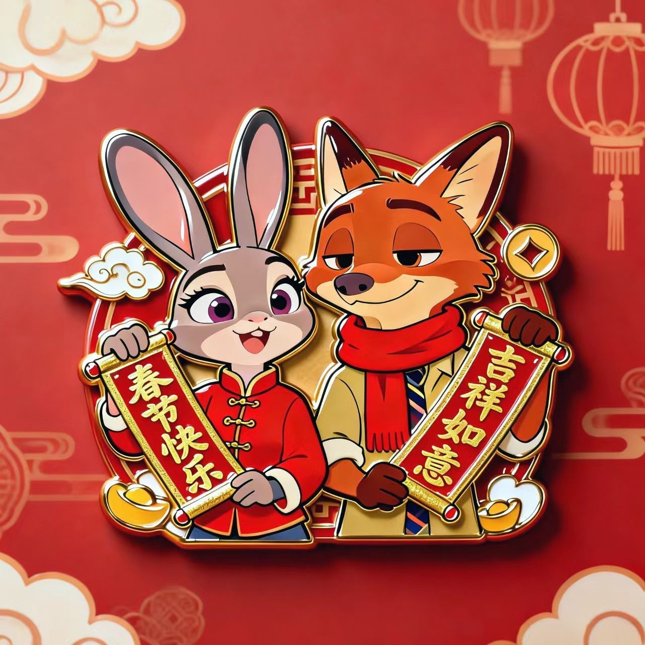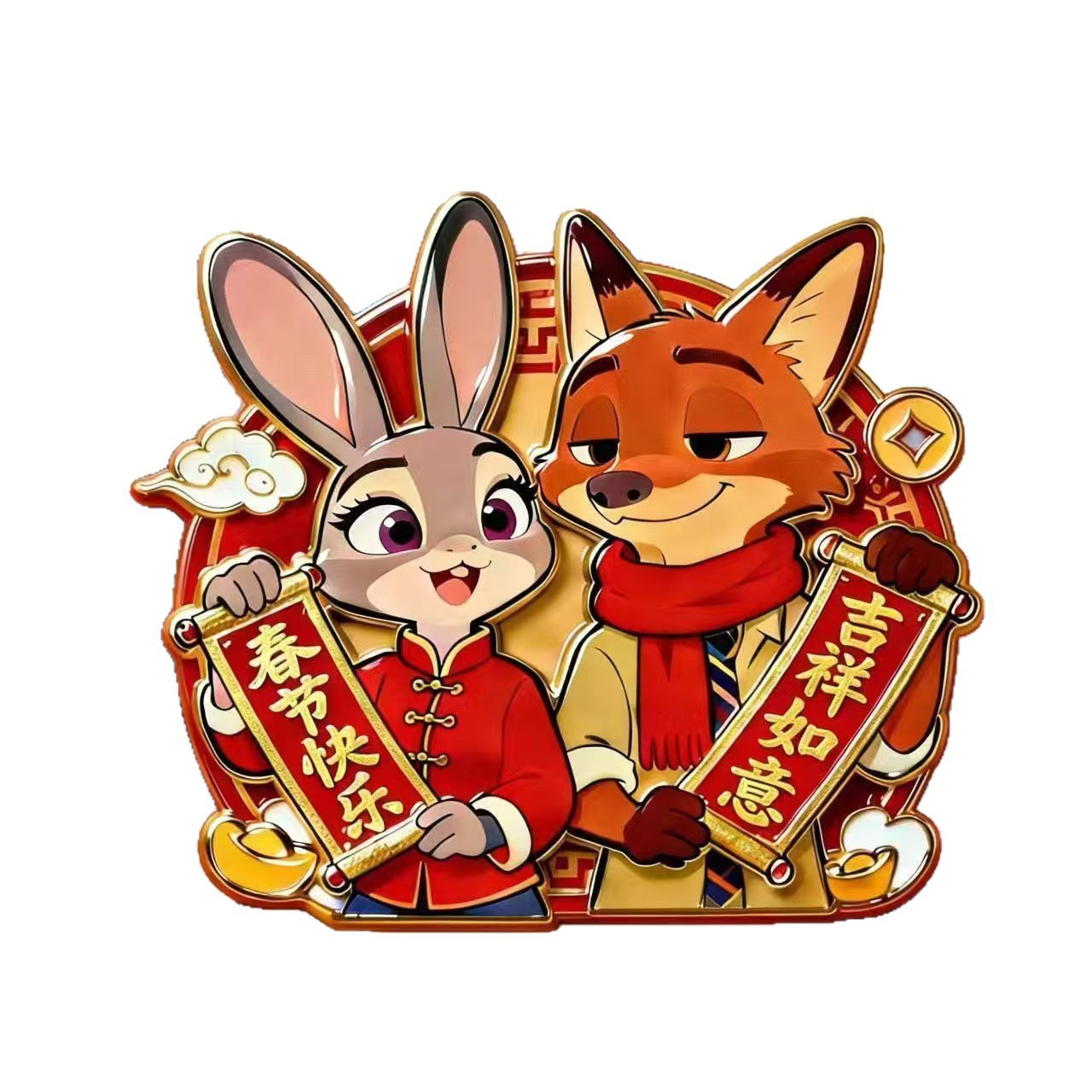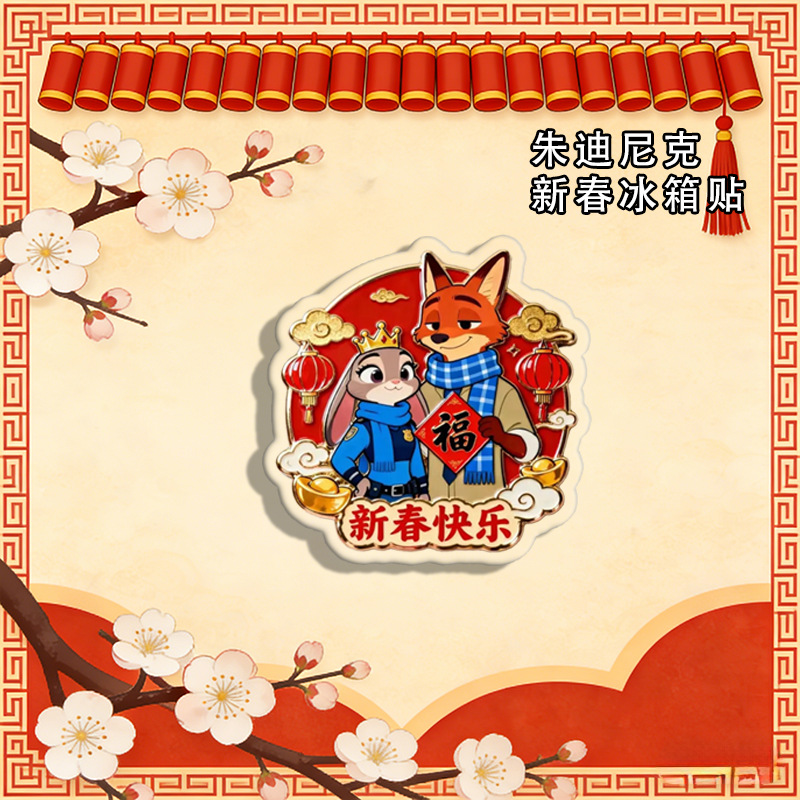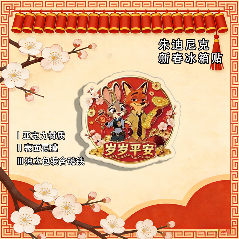 疯狂动物城2-尼克朱迪CP新年款高颜值亚克力磁吸平面冰箱贴祝福