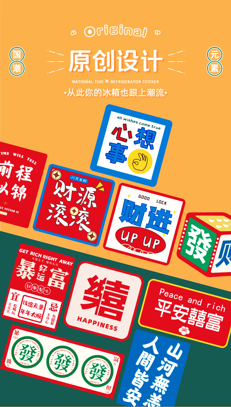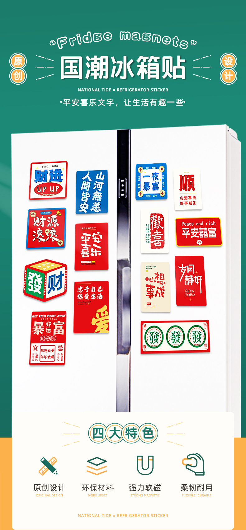 现货35款冰箱贴磁力贴纸个性创意吸铁石小图案国潮定制纪念品装饰