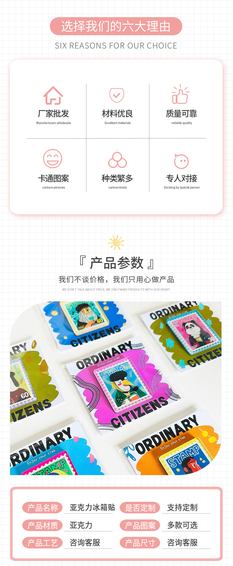 亚克力冰箱贴定制卡通涂鸦文艺熊猫冰箱贴动漫宠物猫狗周边磁性贴