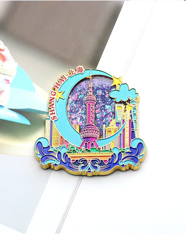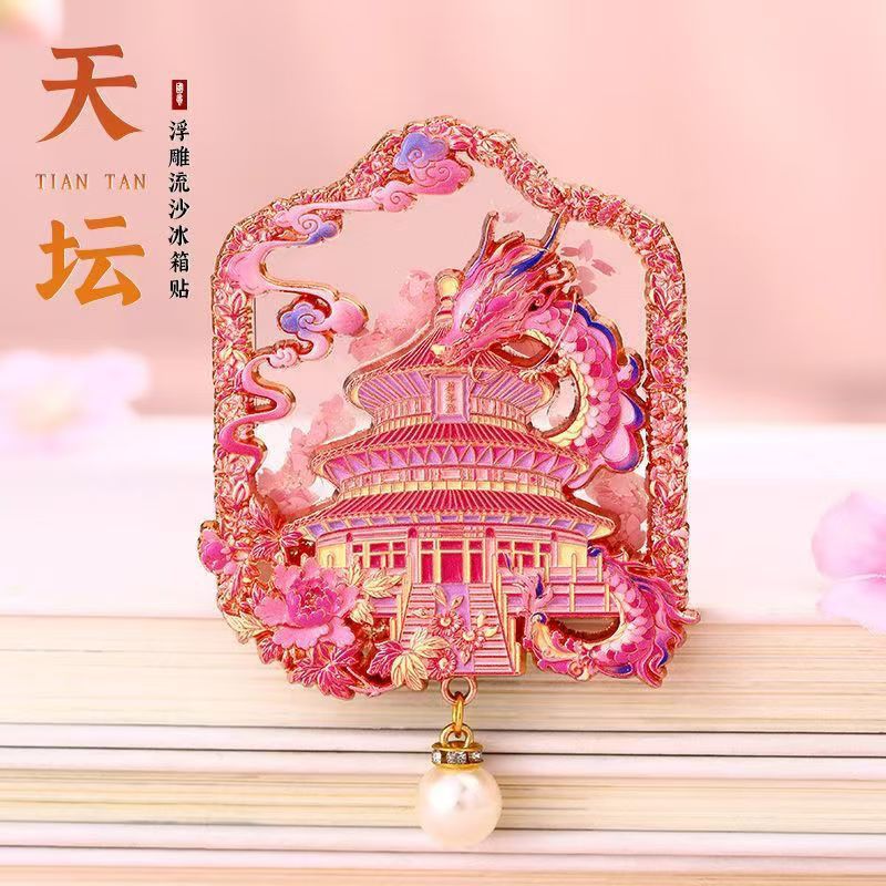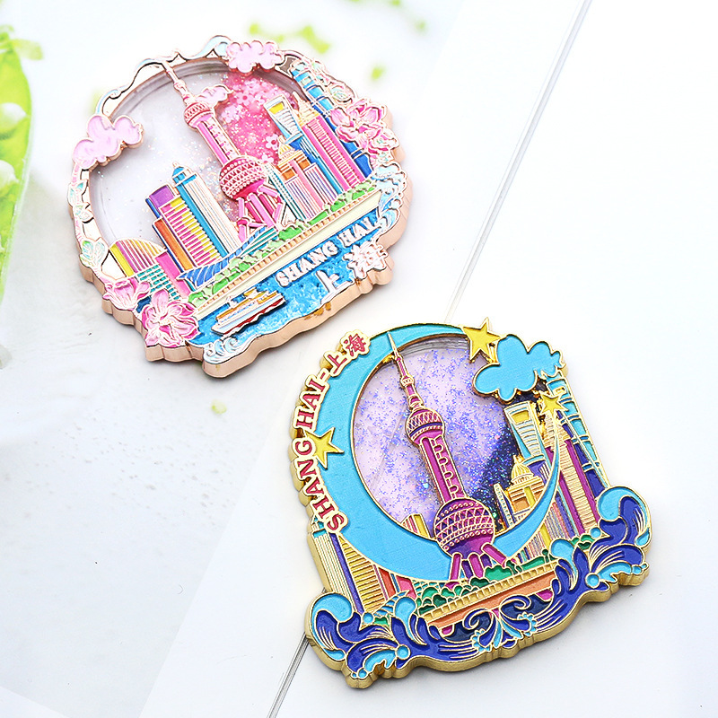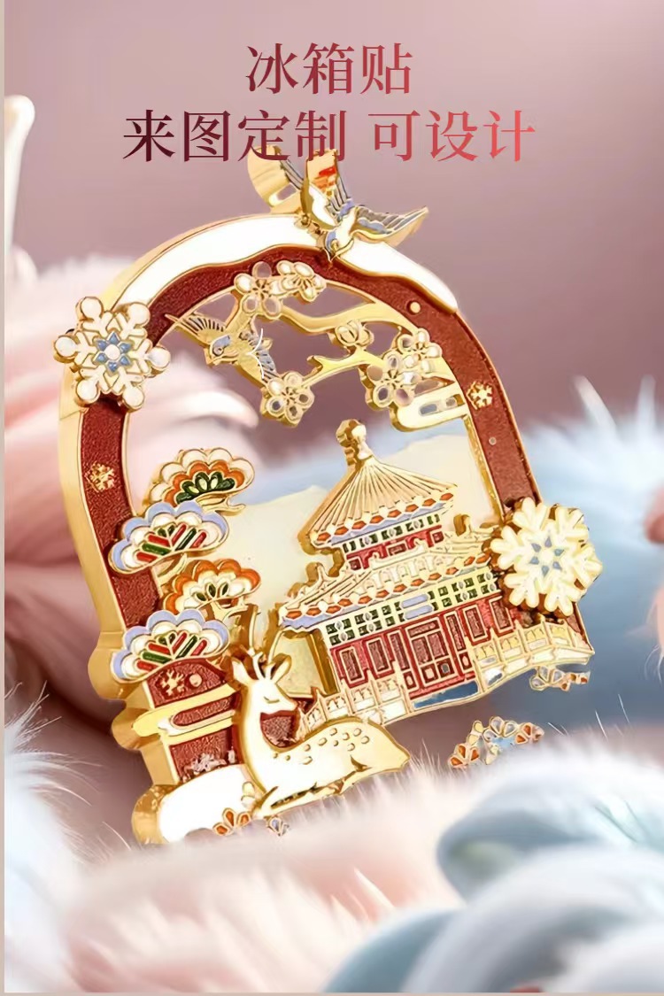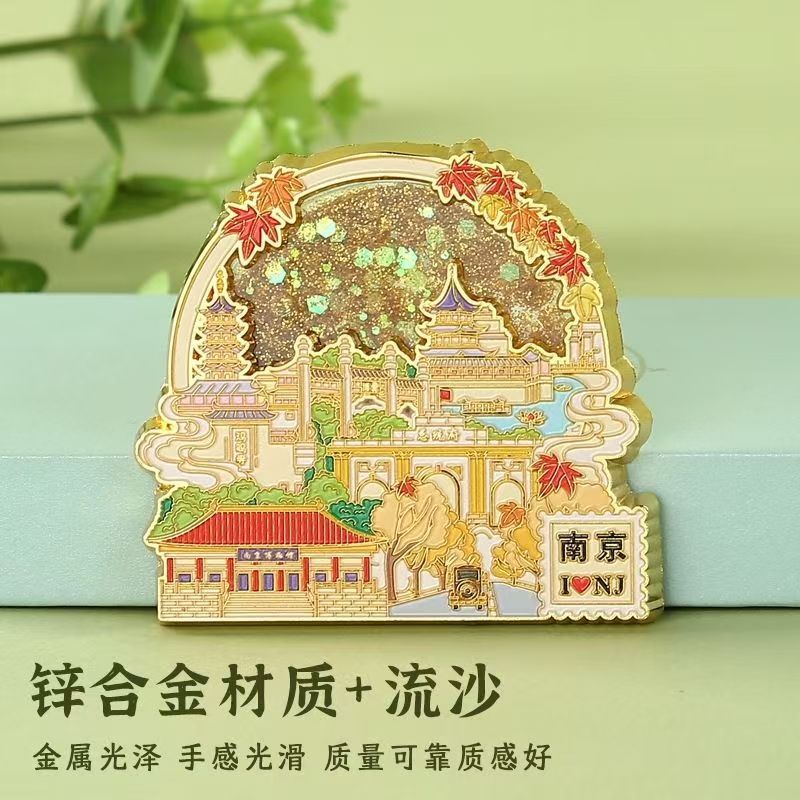 流沙冰箱贴定制旋转景区旅游博物馆景点logo文创礼品烤漆珐琅工艺
