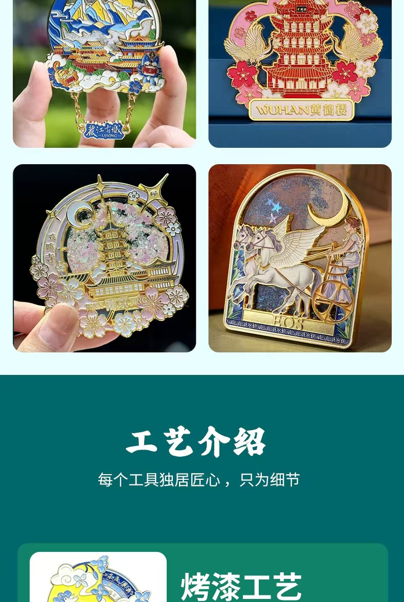 金属冰箱贴定制北京上海广州西安成都武汉重庆旅游文创纪念品磁贴