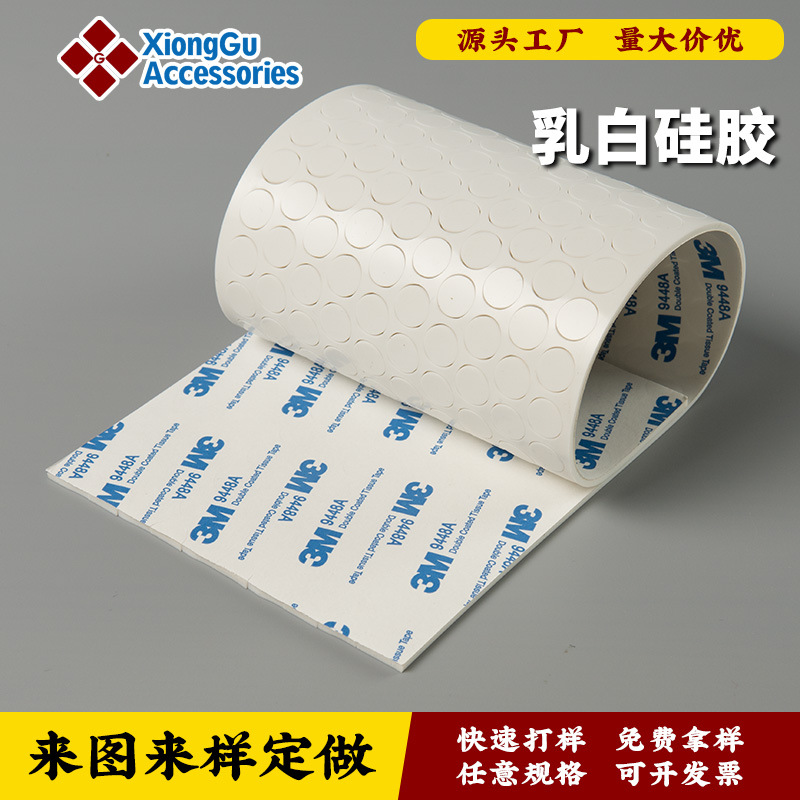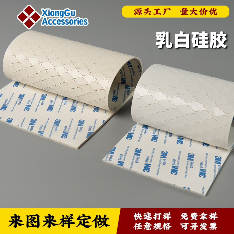 厂家硅胶防滑脚垫透明乳白色灰色黑色防震防撞圆形网格纹带胶自粘