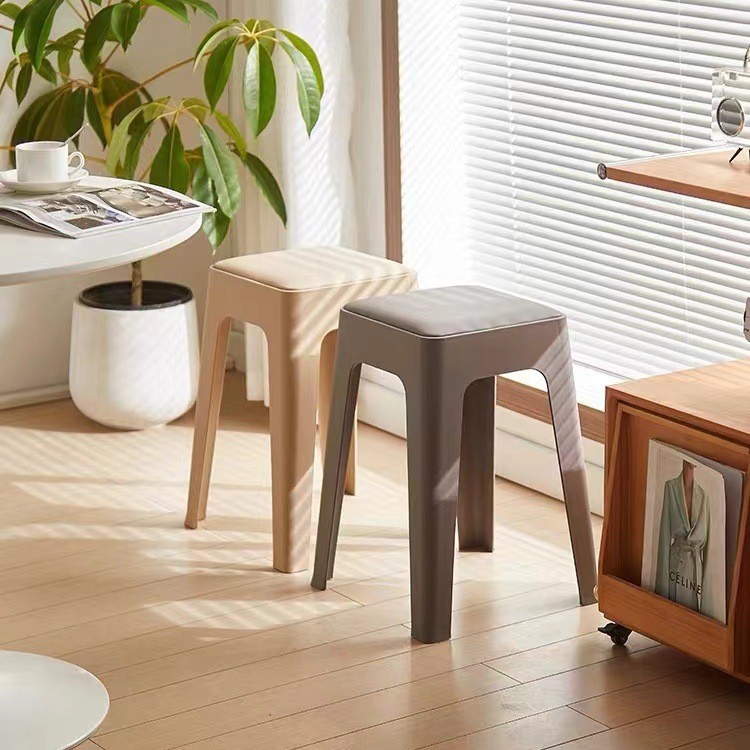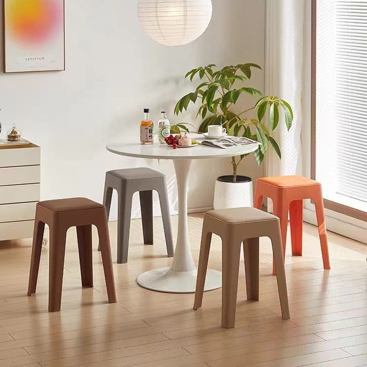 凳子塑料加厚家用可叠放软包方凳现代简约客厅餐桌高板凳餐厅椅子