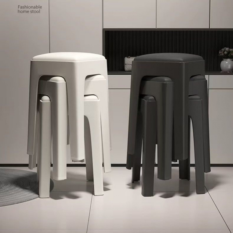 塑料凳子家用加厚结实叠放软包方凳现代简约客厅防滑餐桌板凳高凳